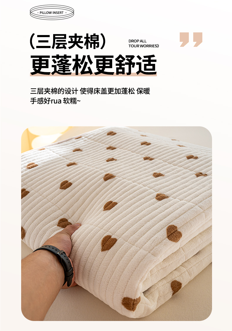 当前位置: 91家纺网 > 商品网购 > 床上用品 > 床盖 > X猫先生 2024新款牛奶绒床盖床垫小清新印花夹棉水洗棉炕盖双面两用 咖心