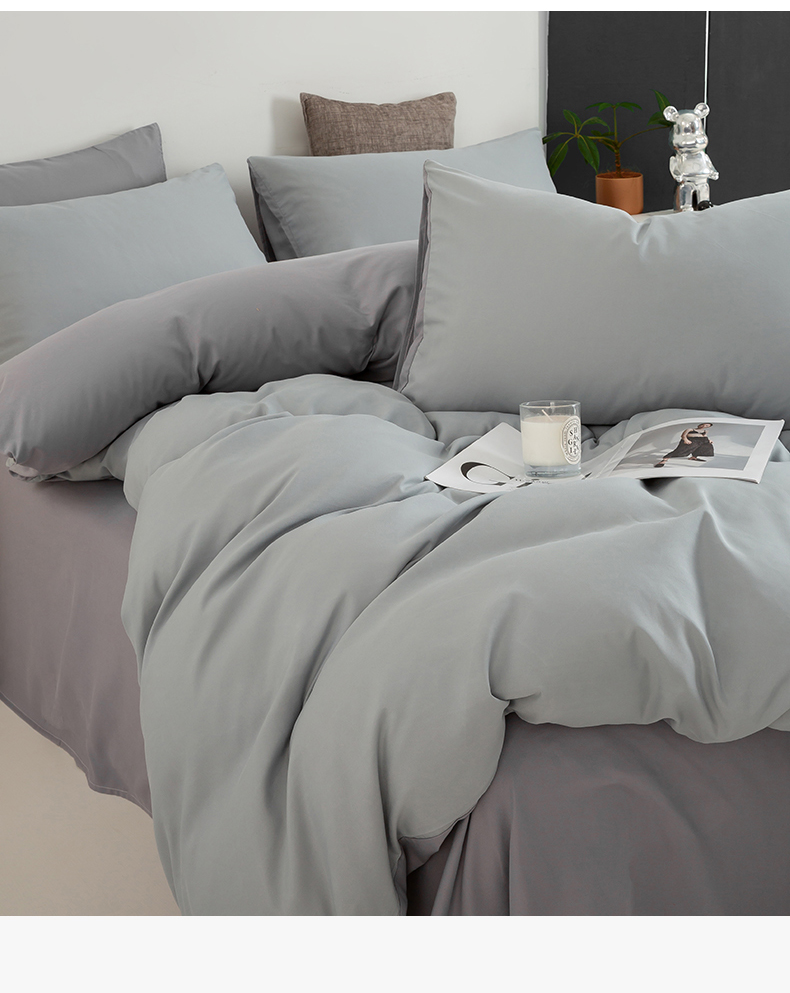 乐沐家纺 2024新款纯色磨毛水洗棉四件套 梵星蓝灰