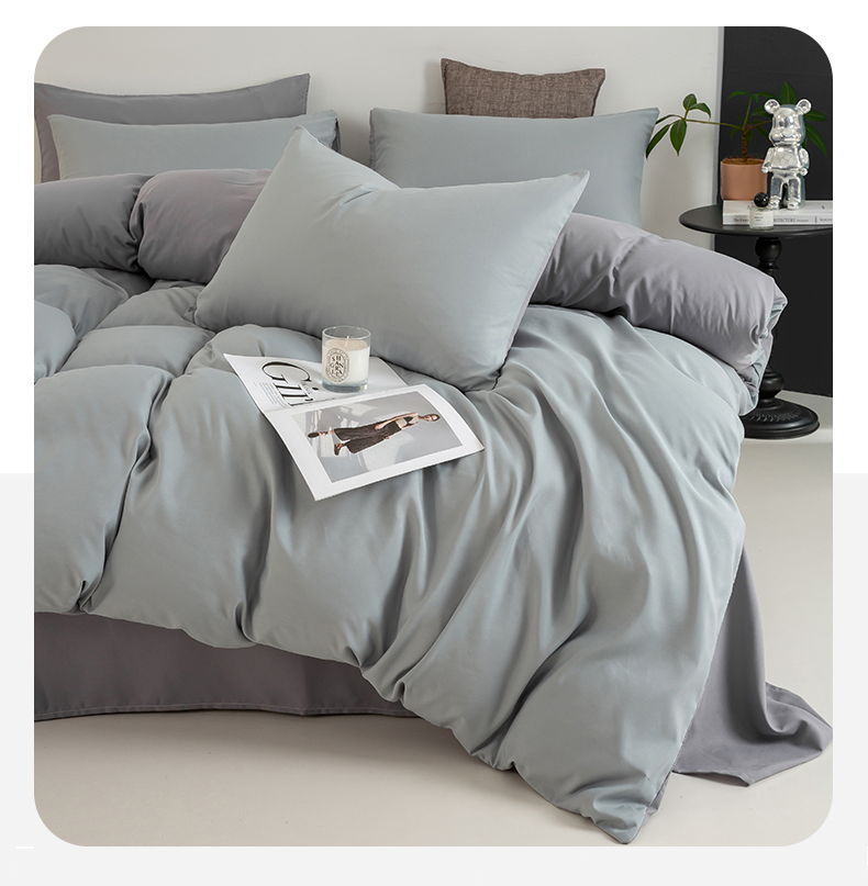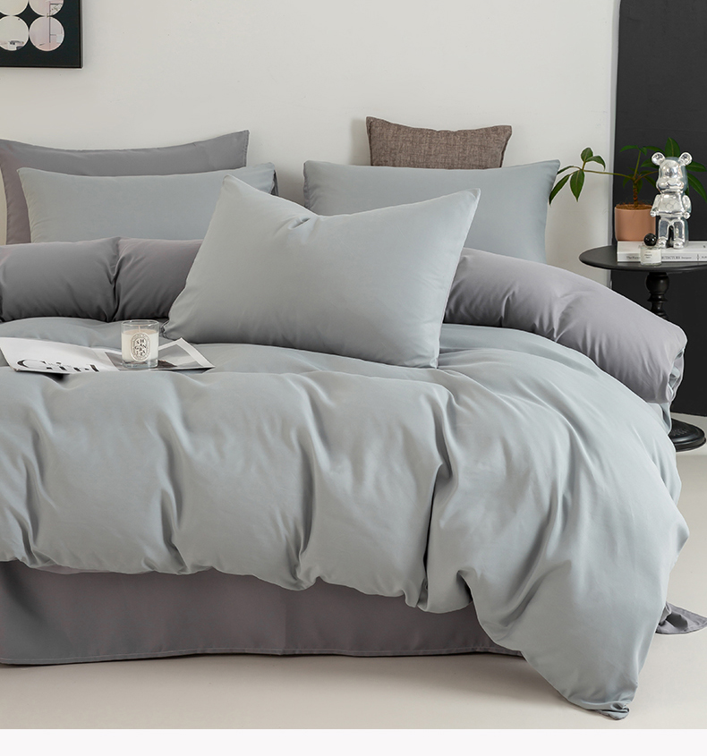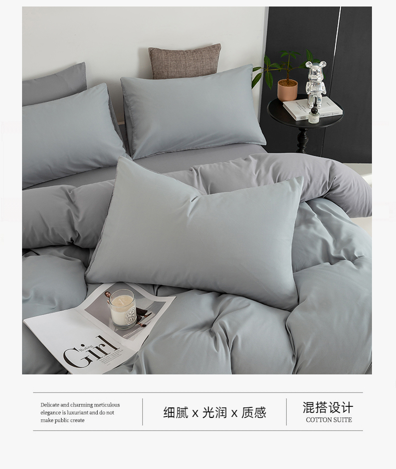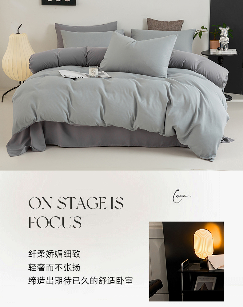 • 91家纺网 家纺一手货源 找家纺 乐沐家纺 2024新款纯色磨毛水洗棉四件套 梵星蓝灰