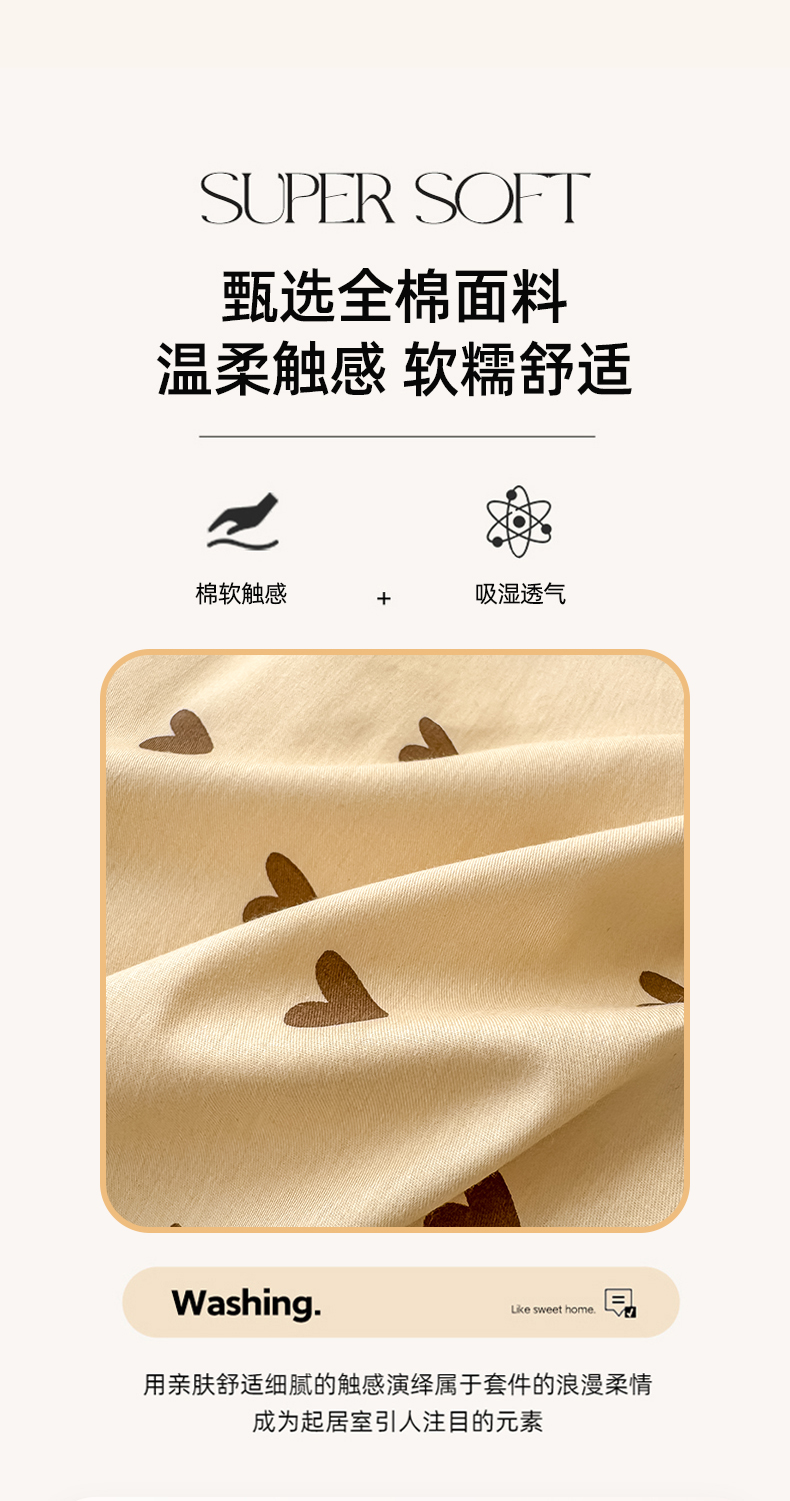 清雅福 2025全棉13372小清新四件套和单被套早春系列第二批--单枕套 心甜