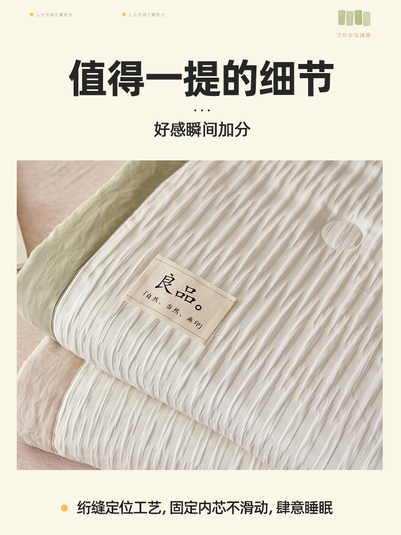 一加一家纺2025新款A类双层泡泡纱波纹提花牛奶蛋白夏被四件套 良品波浪纹-草绿色