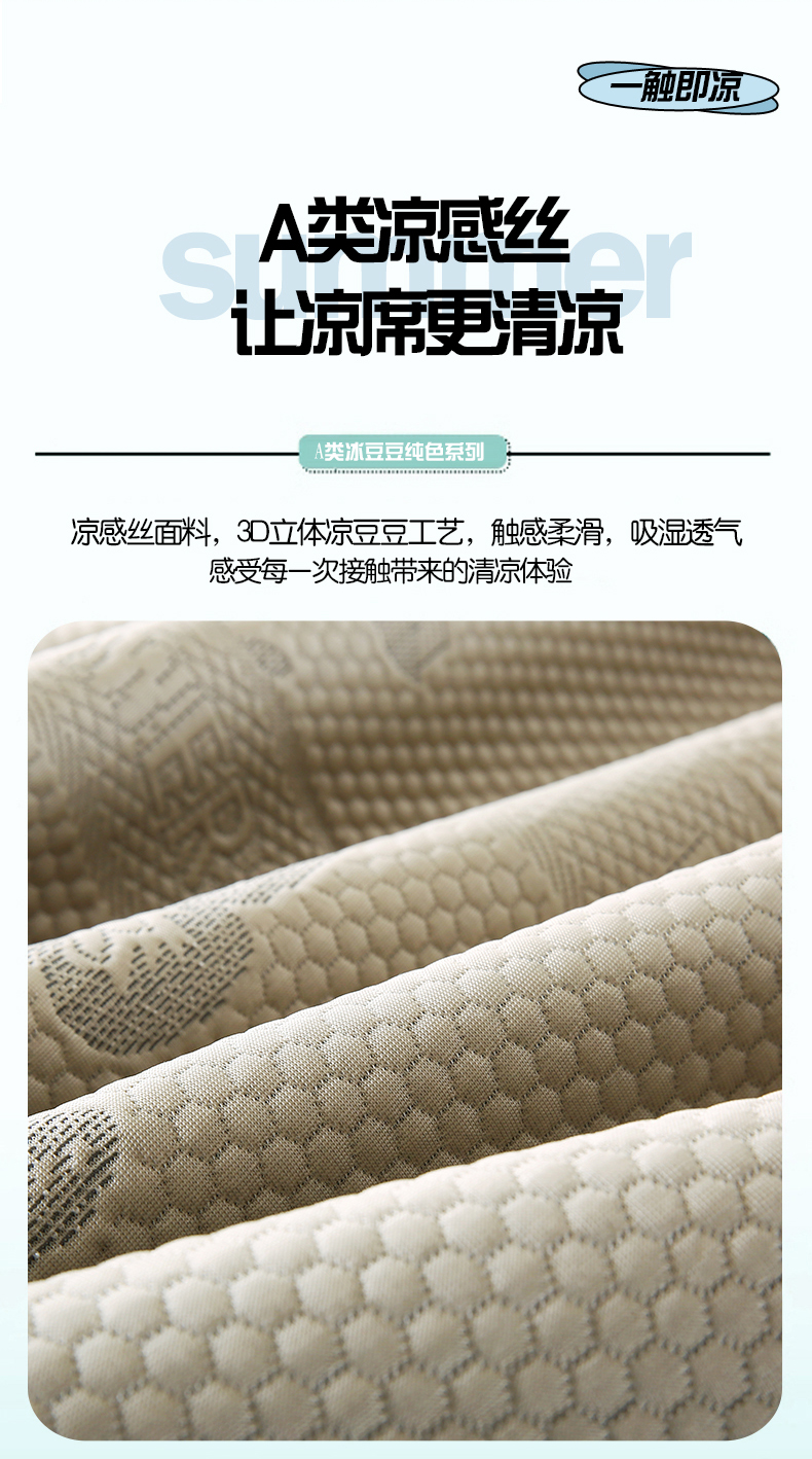 (总)莱轩席业 2024新款A类抗菌刺绣冰丝席条席款凉席,冰川绿,冰川粉,冰川咖,冰川蓝