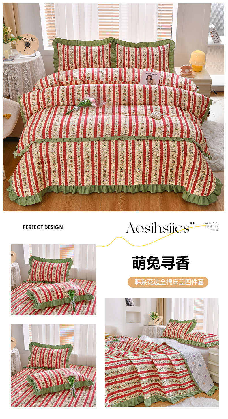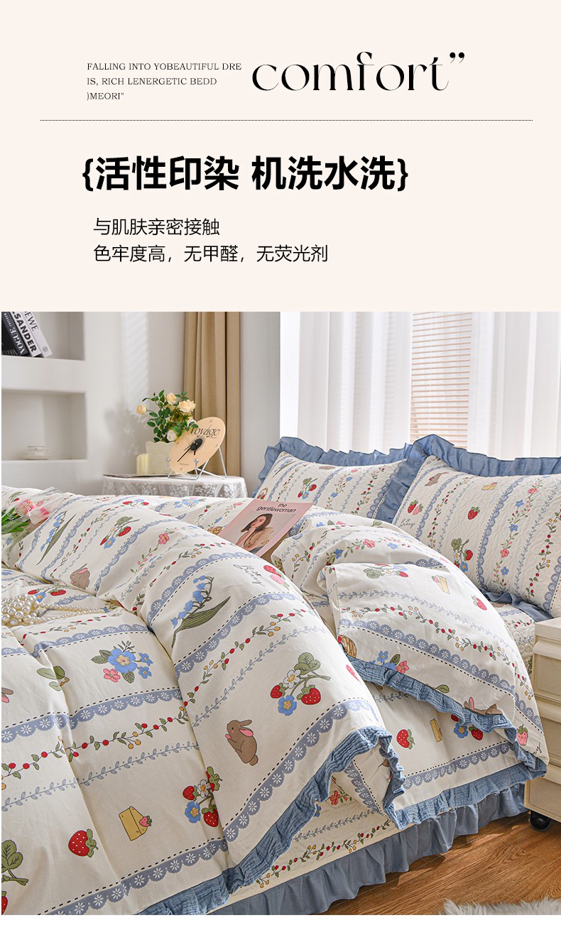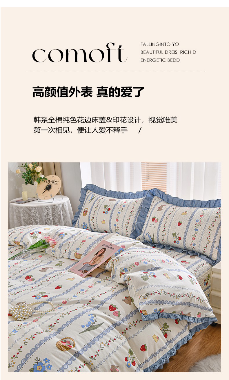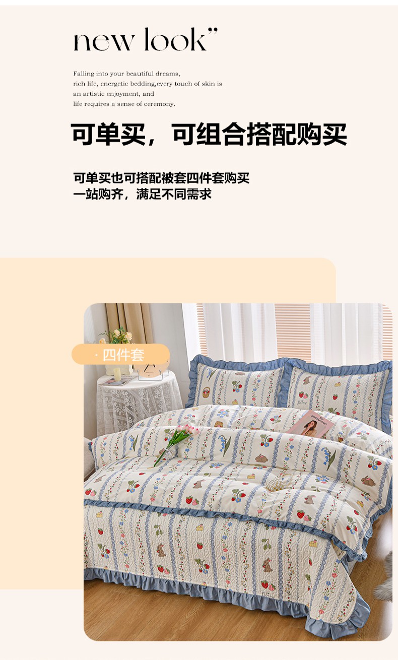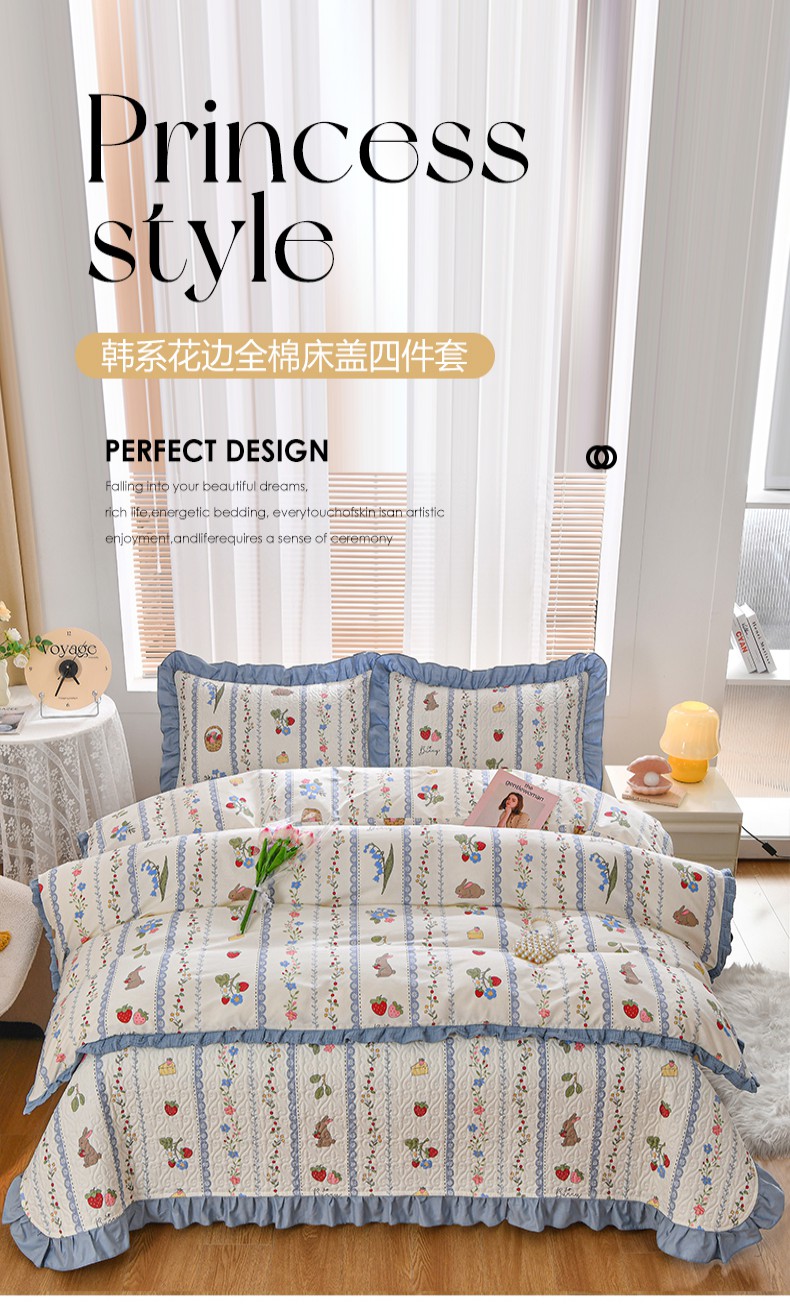 (总)梦精灵家纺 2025新款韩系花边全棉床盖四件套,布朗熊,欢乐熊,浆果小兔,爱薇儿,畅游春园,精灵兔,紫葡萄,萌兔寻香,青丝花带