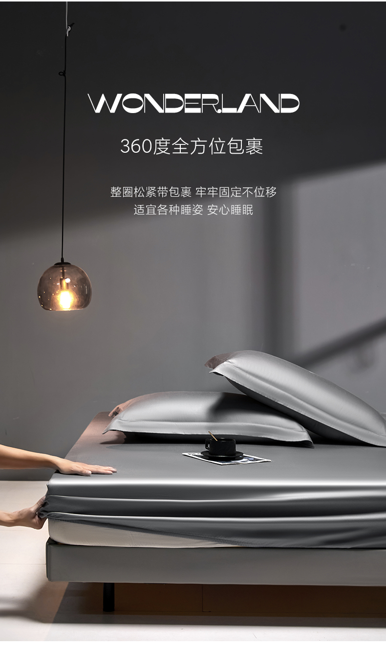 商品名称:秀色2025新款高端纯棉床笠单件全棉全包床套三件套100s新疆长绒棉酒店床垫保护套 梦易-帝王灰
