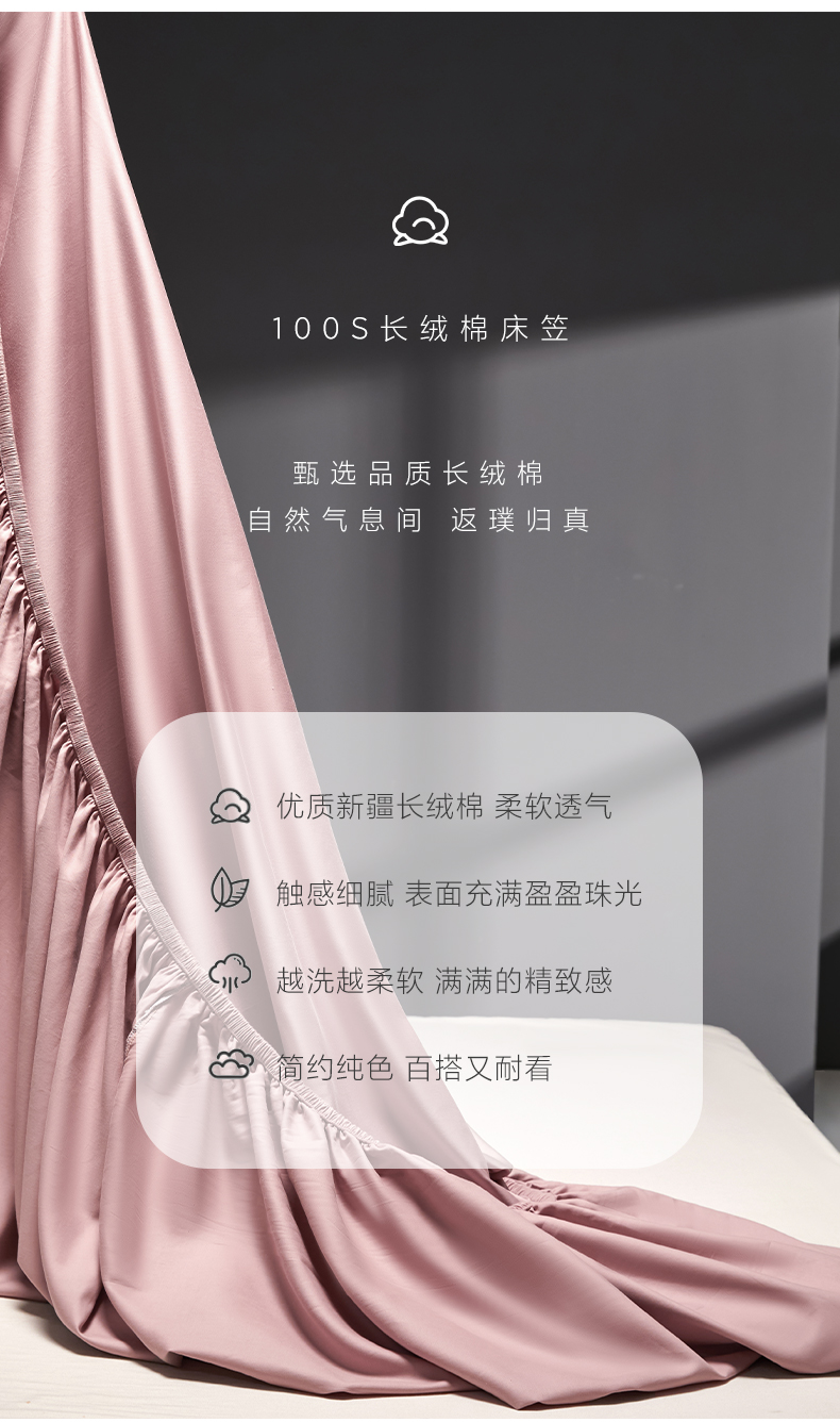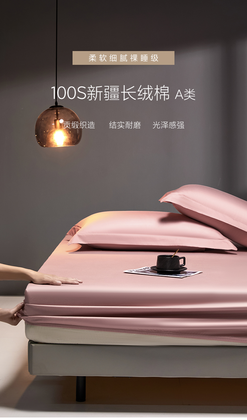 商品名称:秀色2025新款高端纯棉床笠单件全棉全包床套三件套100s新疆长绒棉酒店床垫保护套 梦易-玉颜粉