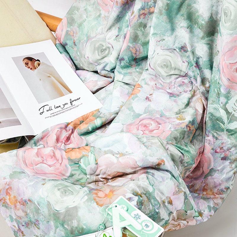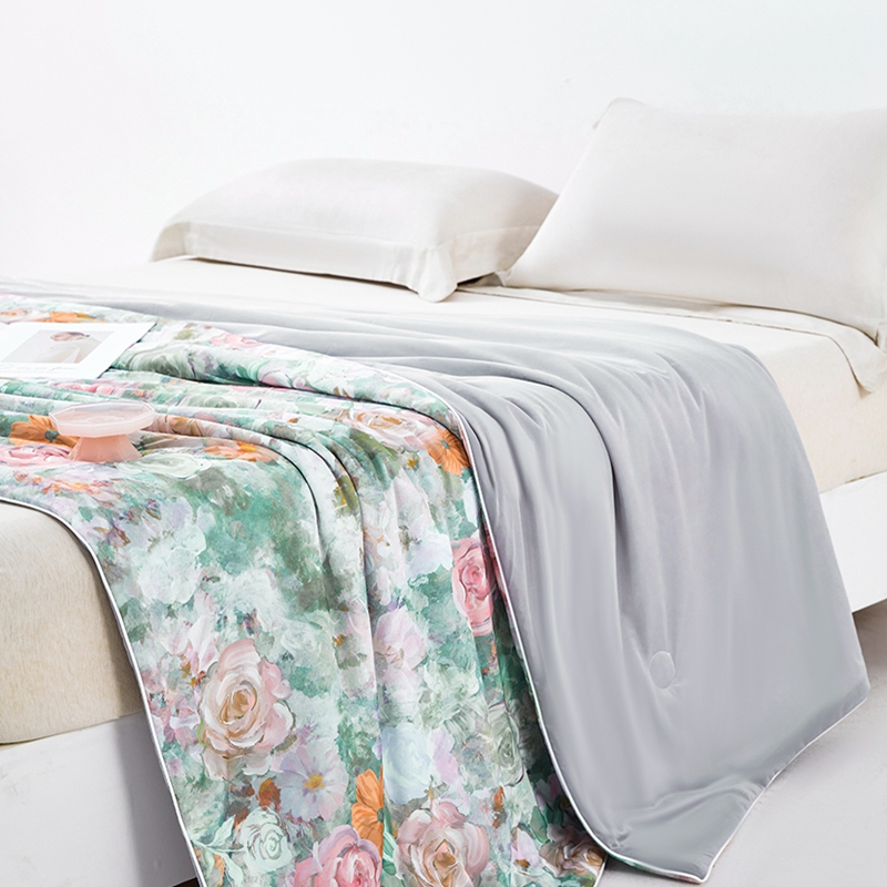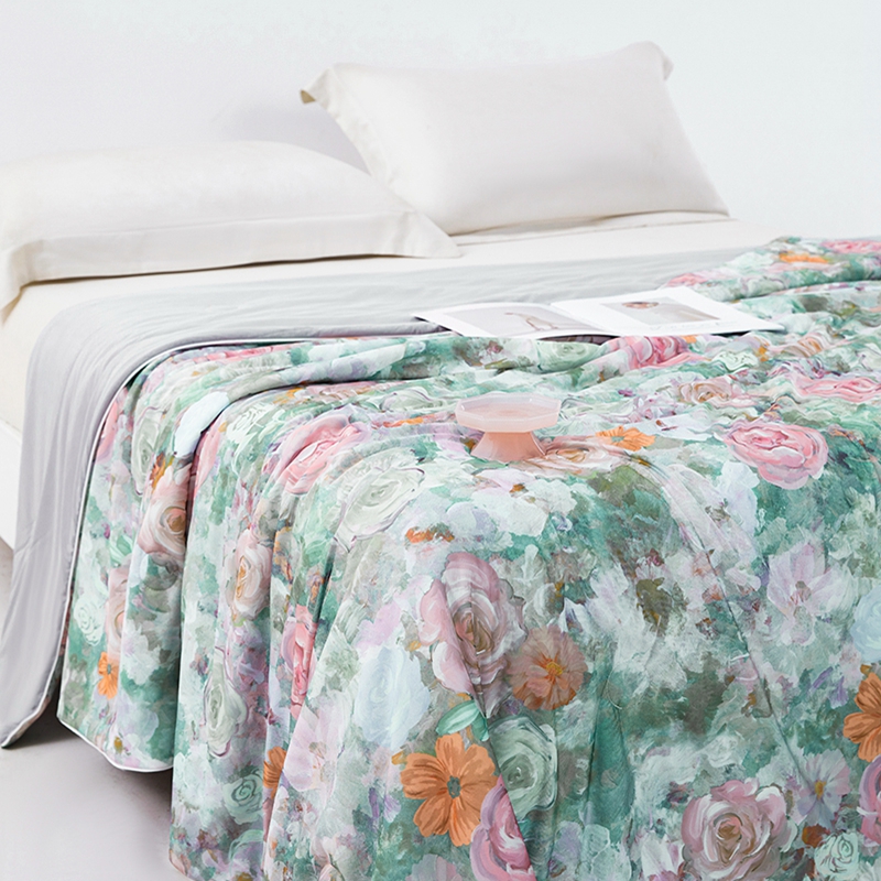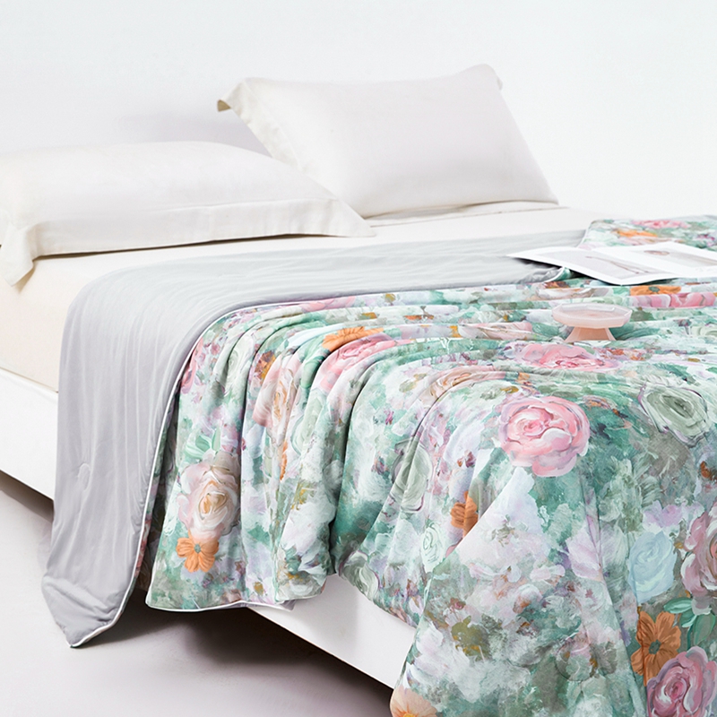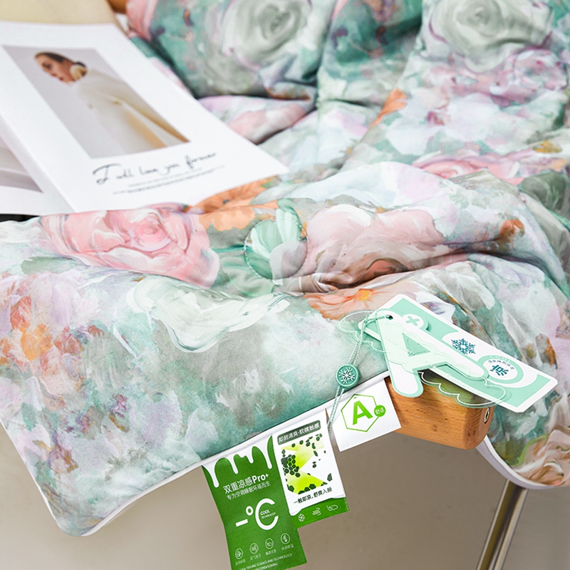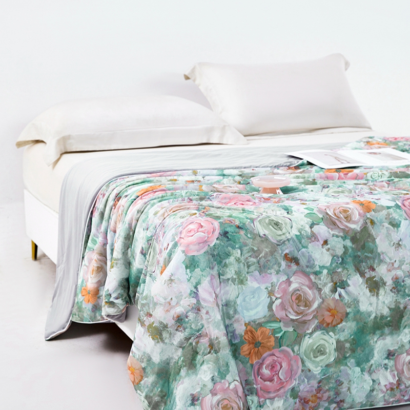 商品名称:小鱼儿家纺 2025新款A类母婴级凉感丝夏被锦氨面料凉感空调被单人双人夏凉被可机洗被子被芯 油墨花卉