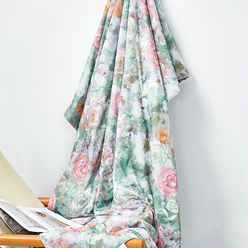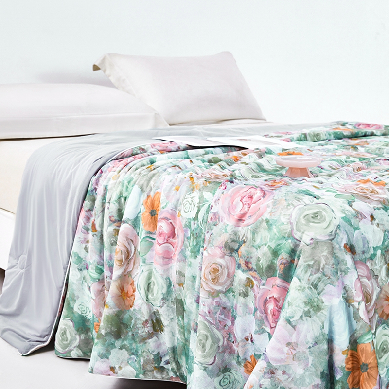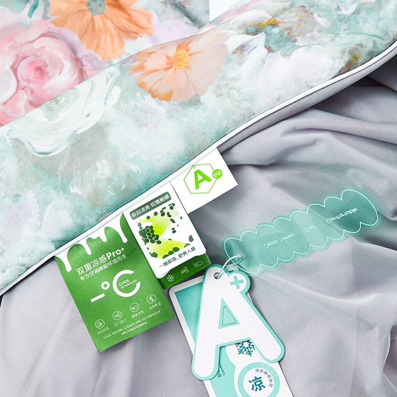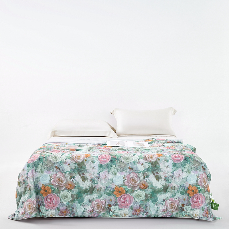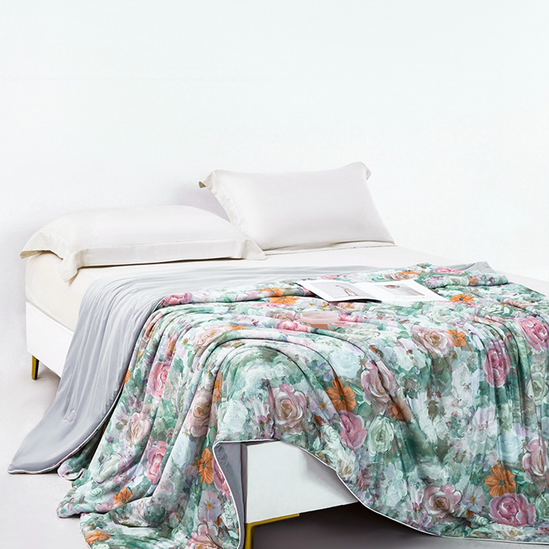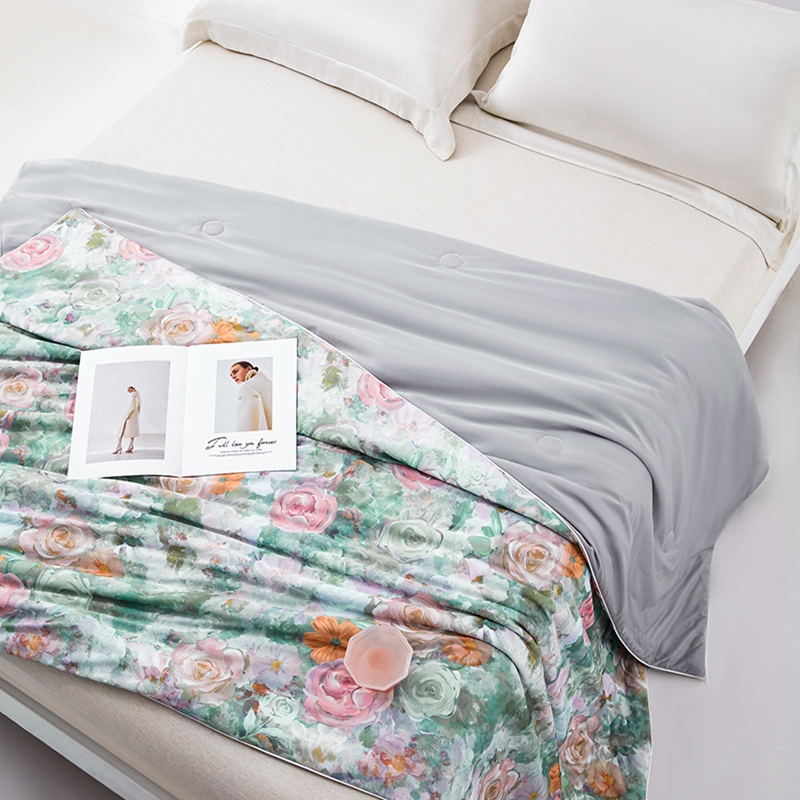 商品名称:小鱼儿家纺 2025新款A类母婴级凉感丝夏被锦氨面料凉感空调被单人双人夏凉被可机洗被子被芯 油墨花卉