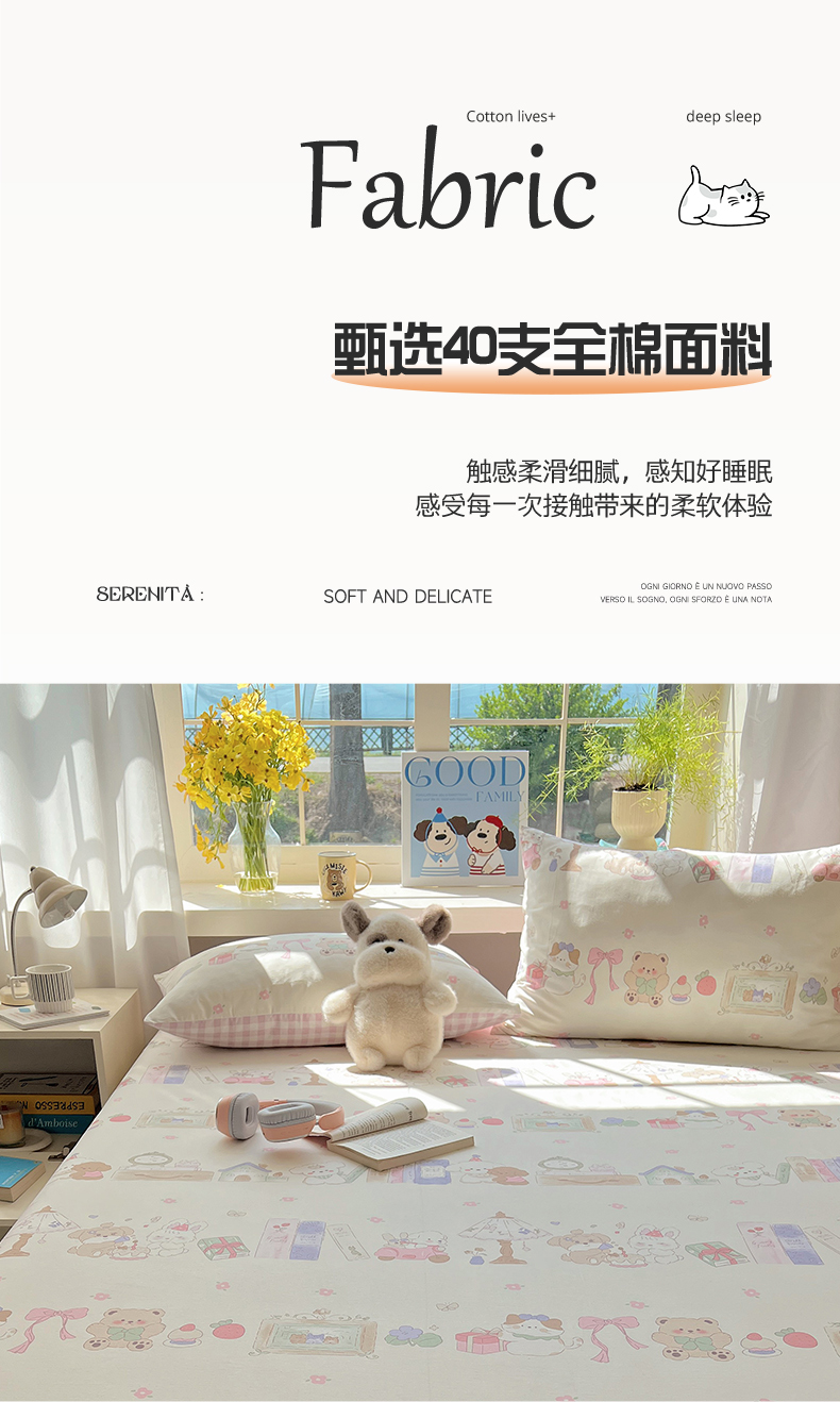 (总)六巷胡同 2025新款 INS减龄可爱风卡通全棉四件套第五系(森林音乐会系列),波点嘟嘟猫,点点面包犬,调皮蔷薇狗,哈喽泡芙猫,蓝格插画犬,森林音乐会
