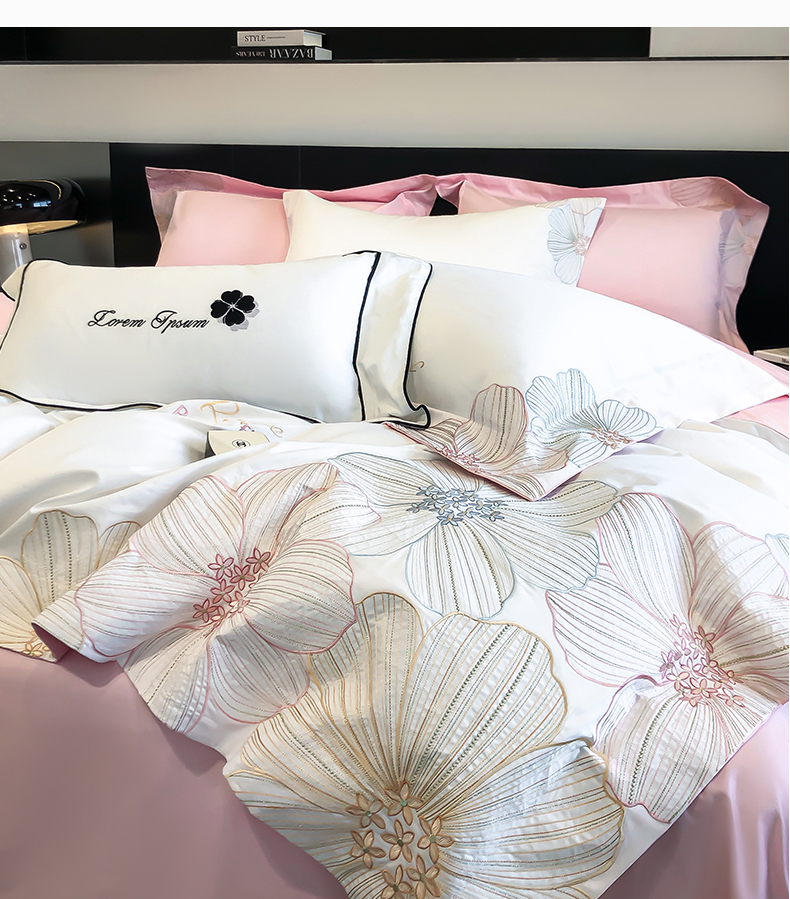 (总)星蕴家纺 2024新款A类新疆全棉刺绣四件套,高级灰,奶昔白,千禧粉,浅香槟