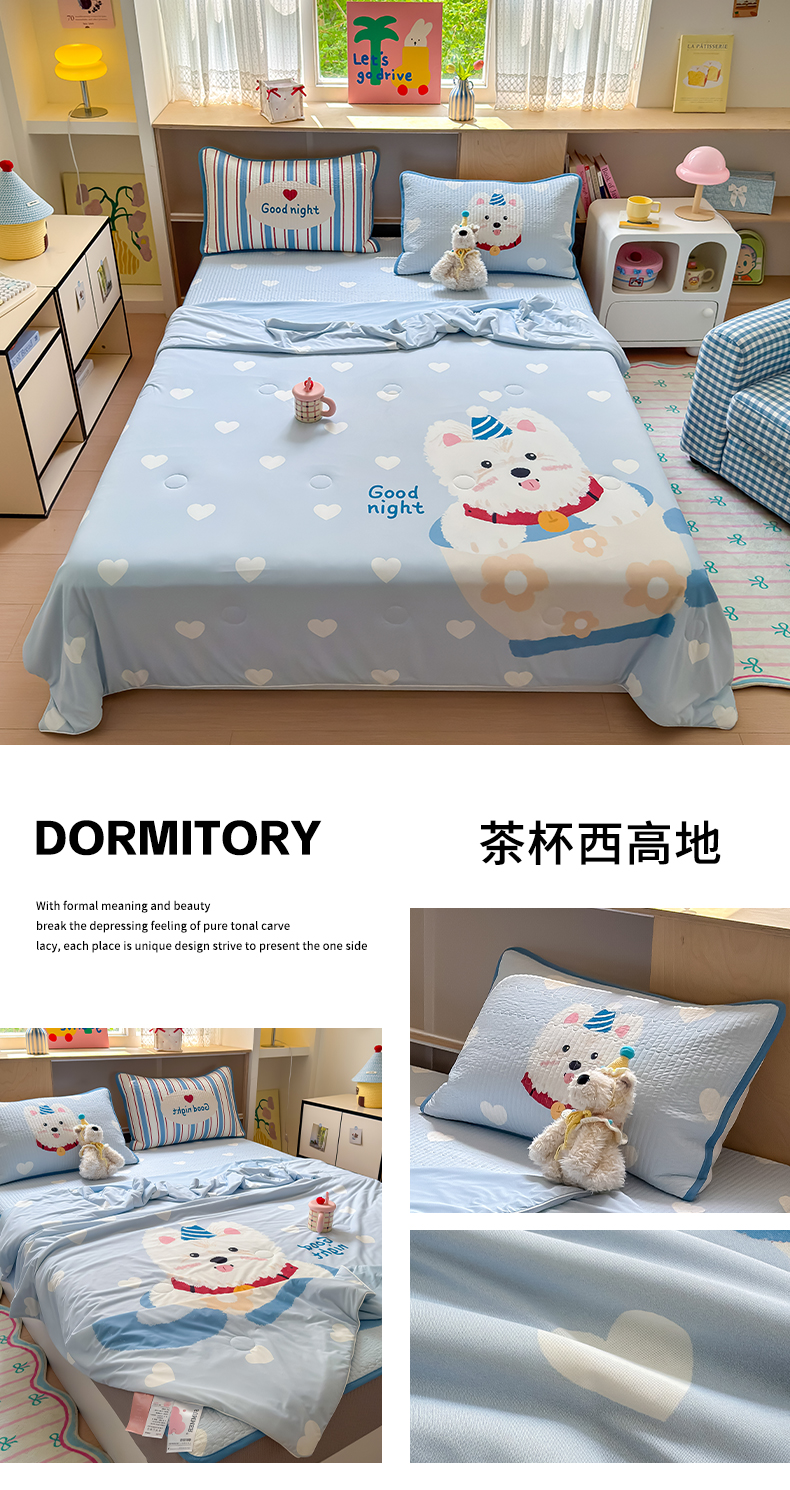 (总)RYB红黄兰 2025新款设计师原创A版抽条兔兔绒B版牛奶绒印花四件套,咖色潦草狗,波点黑猫,包装展示图,星星蝴蝶结,蓝色兔兔,奶油西高地