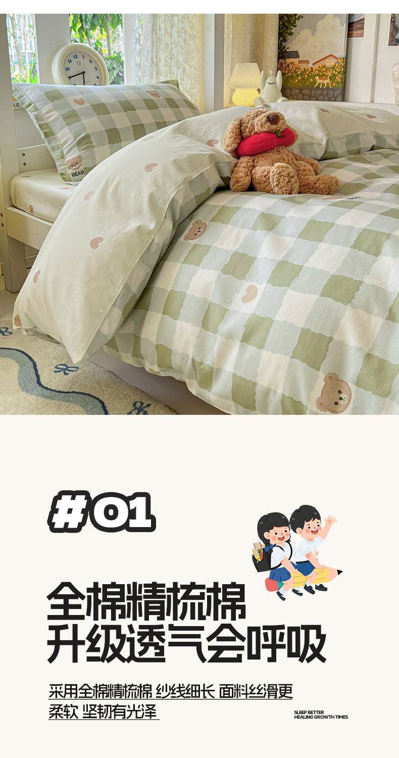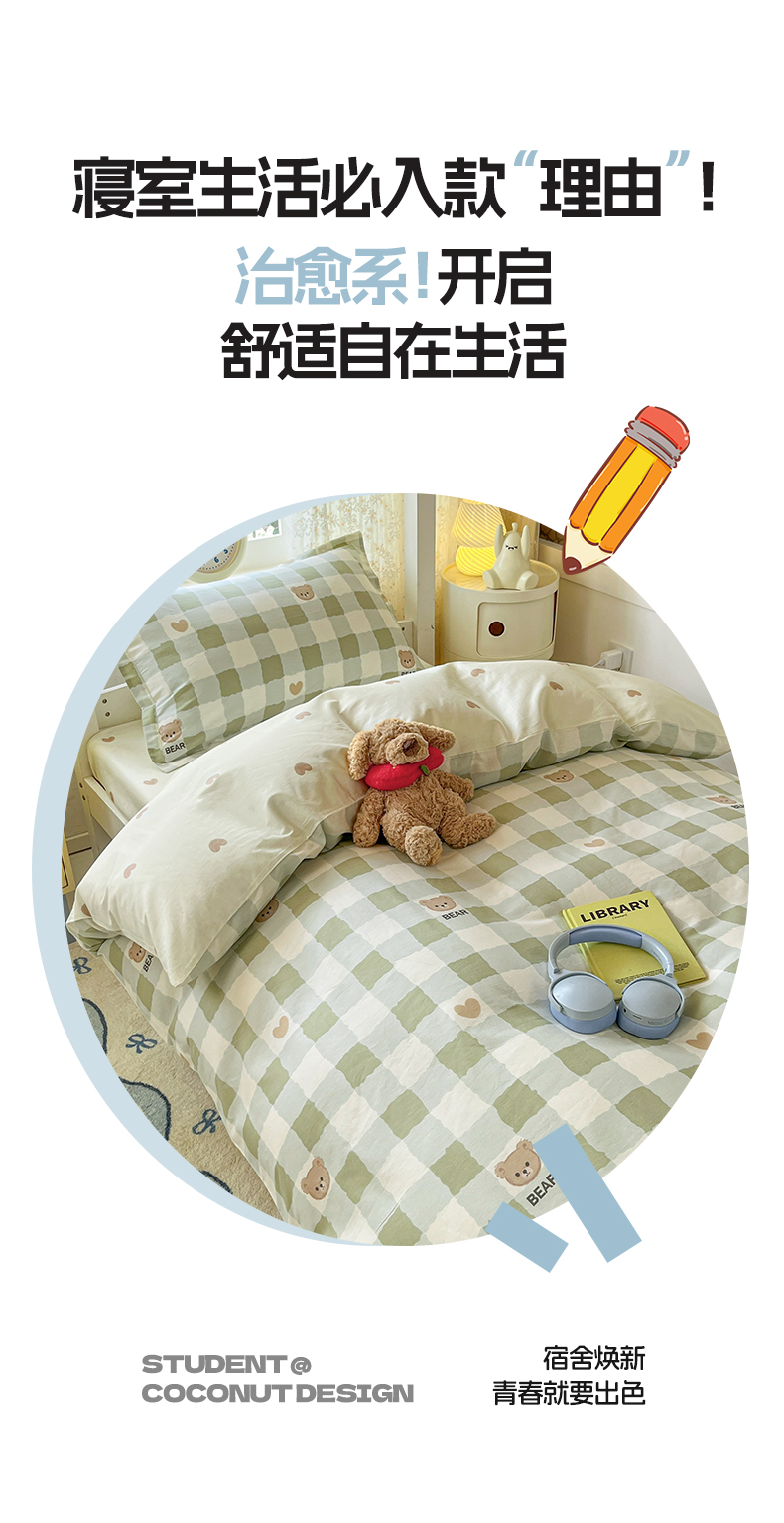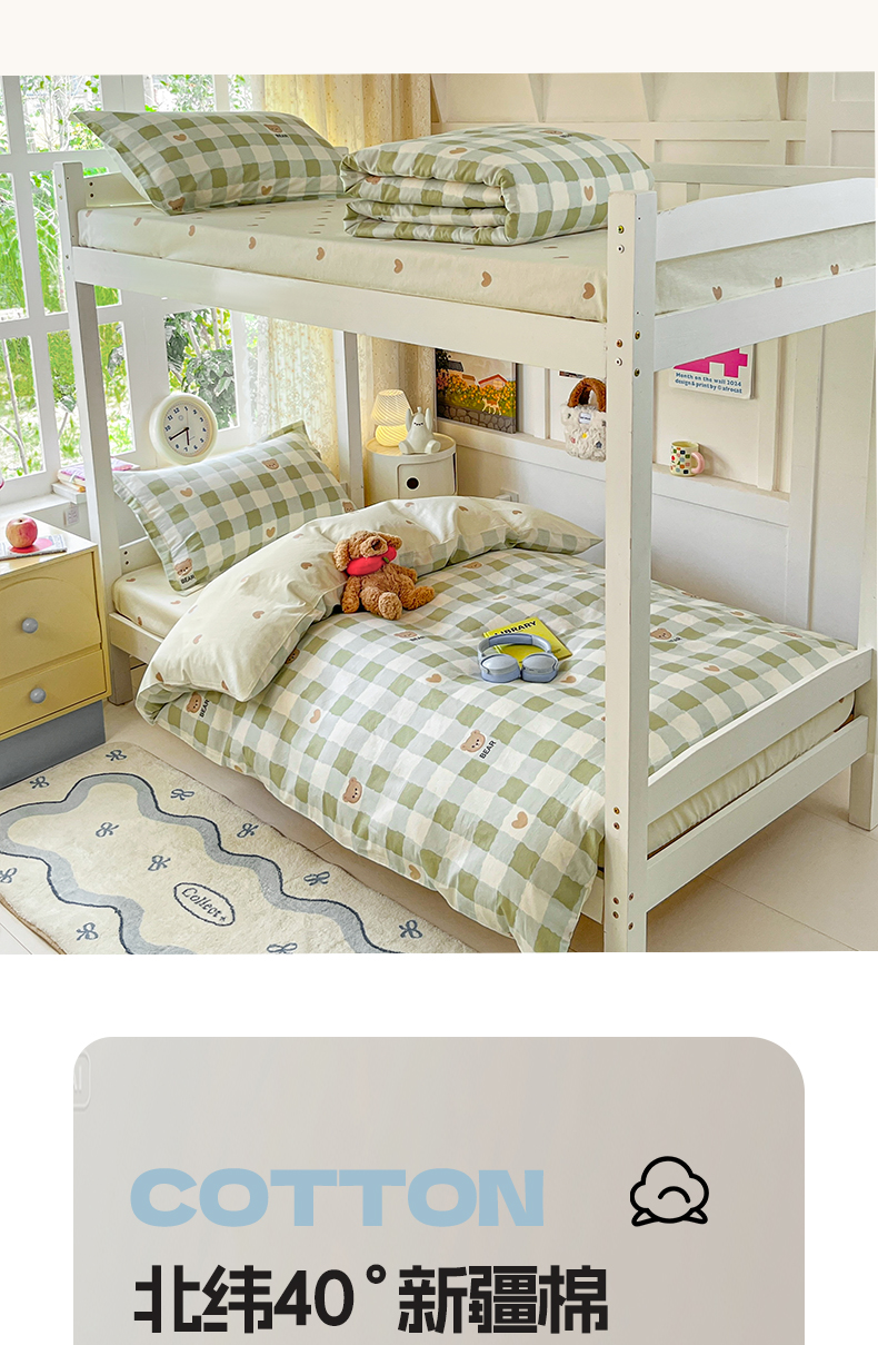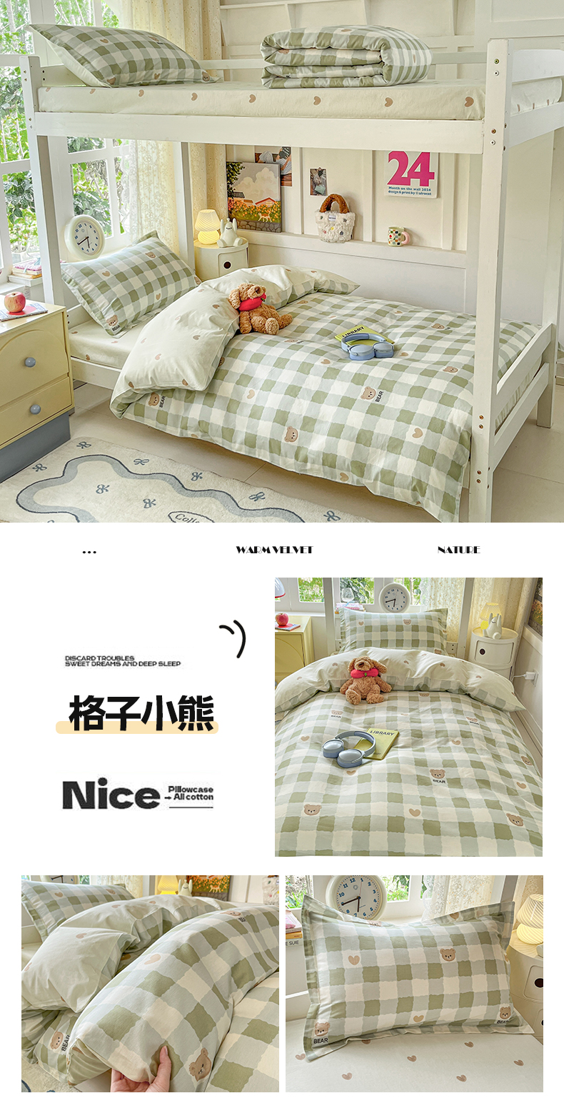 当前位置: 91家纺网 > 商品网购 > 床品套件 > 三件套 > 涵宸家纺 2025新款学生图-全棉印花-甜系三件套四件套 A格子小熊