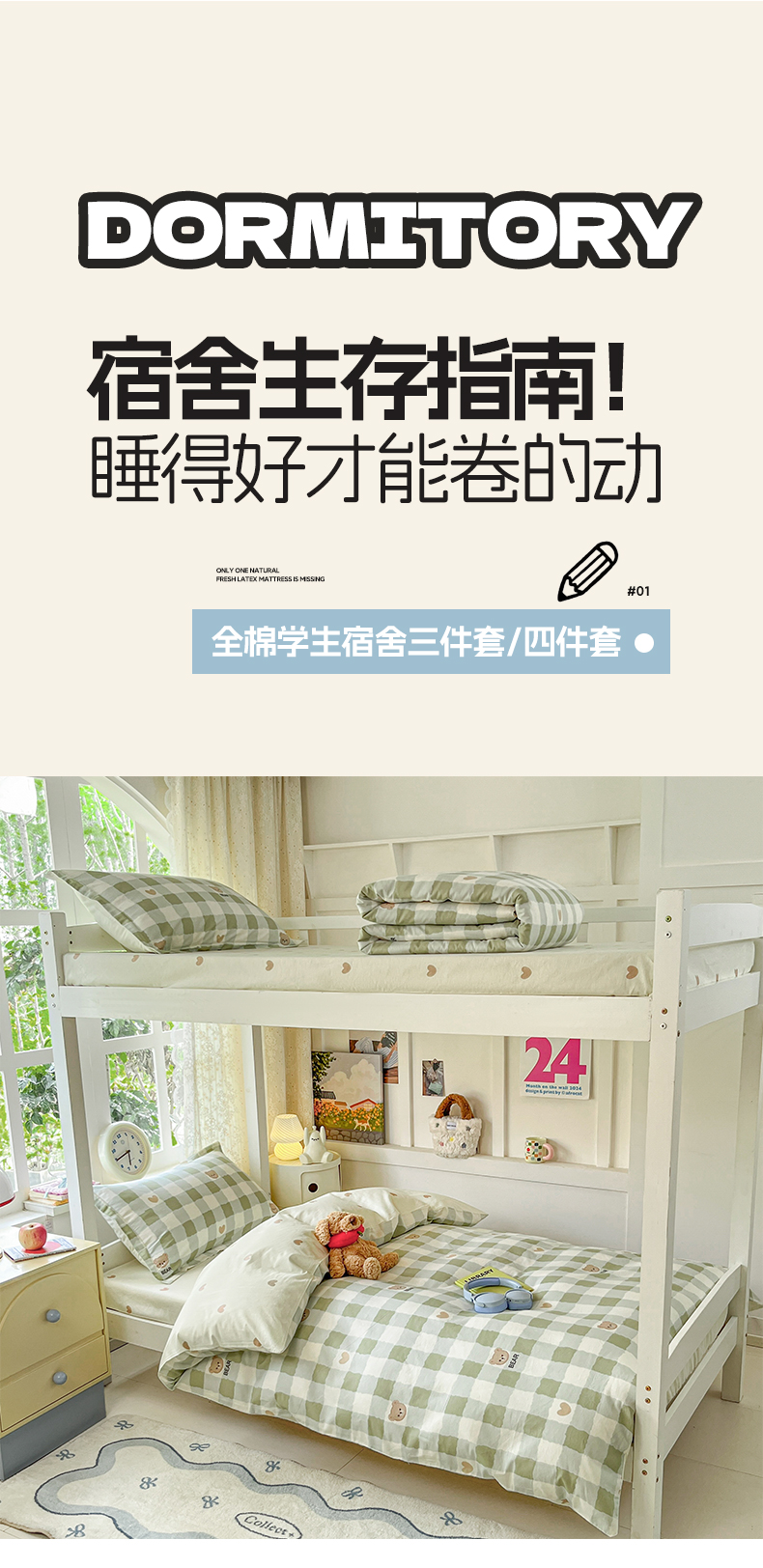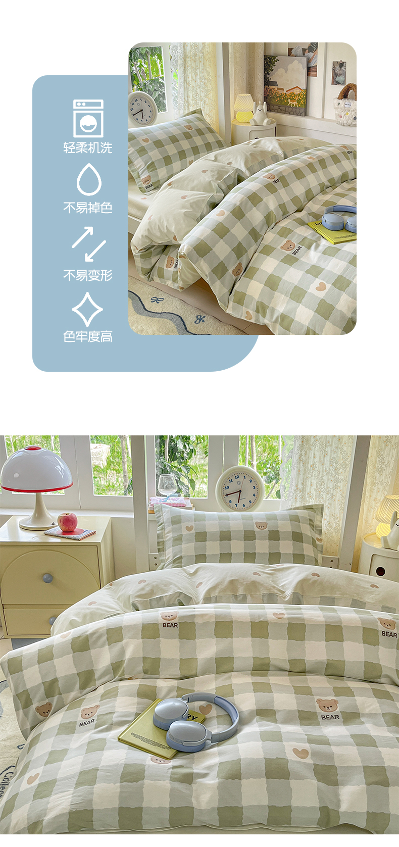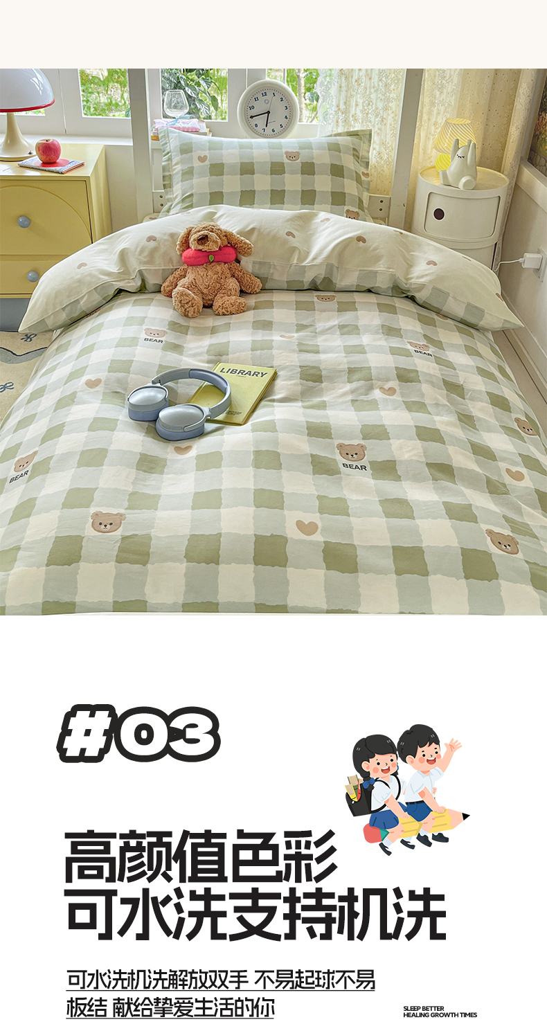 当前位置: 91家纺网 > 商品网购 > 床品套件 > 三件套 > 涵宸家纺 2025新款学生图-全棉印花-甜系三件套四件套 A格子小熊