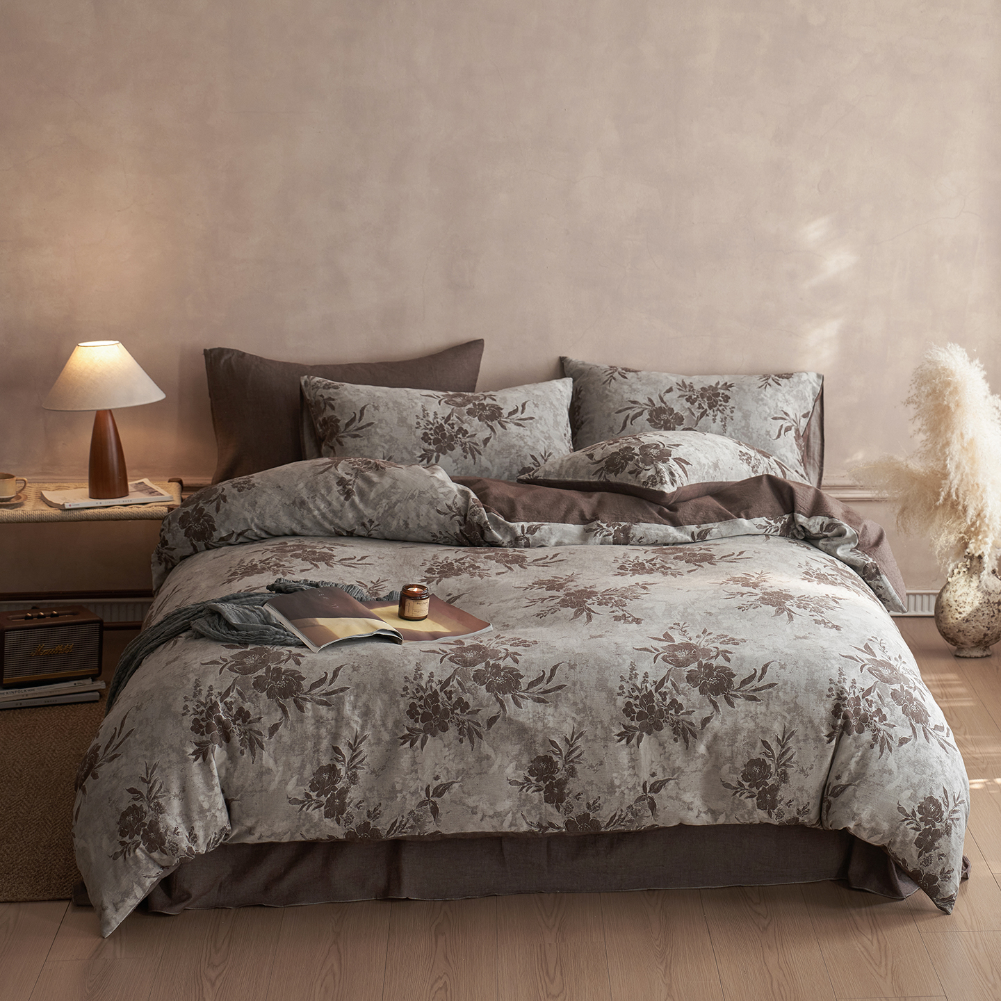 商品名称:清雅福 2025新款A类全棉水洗色织大提花四件套 花意间-暗粉