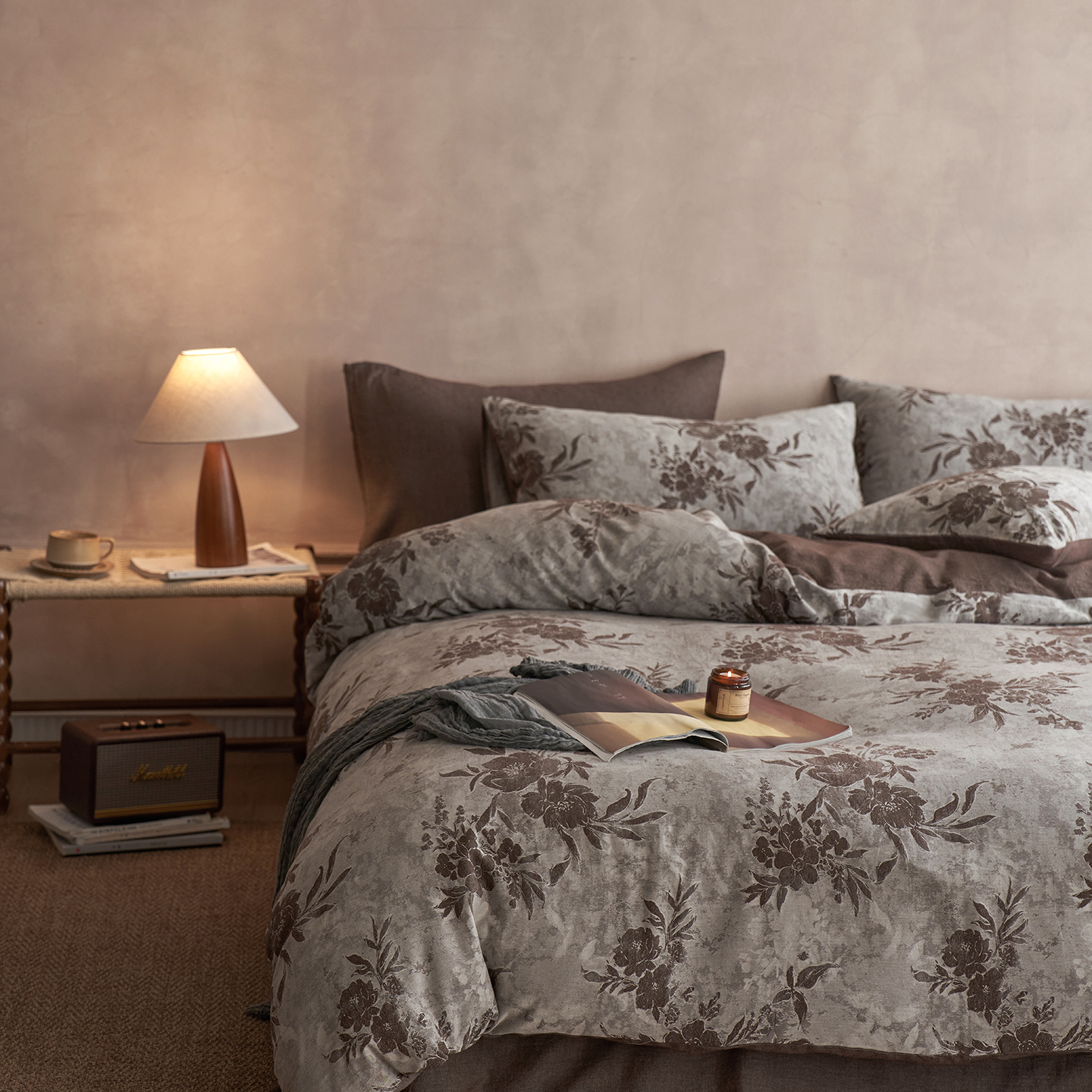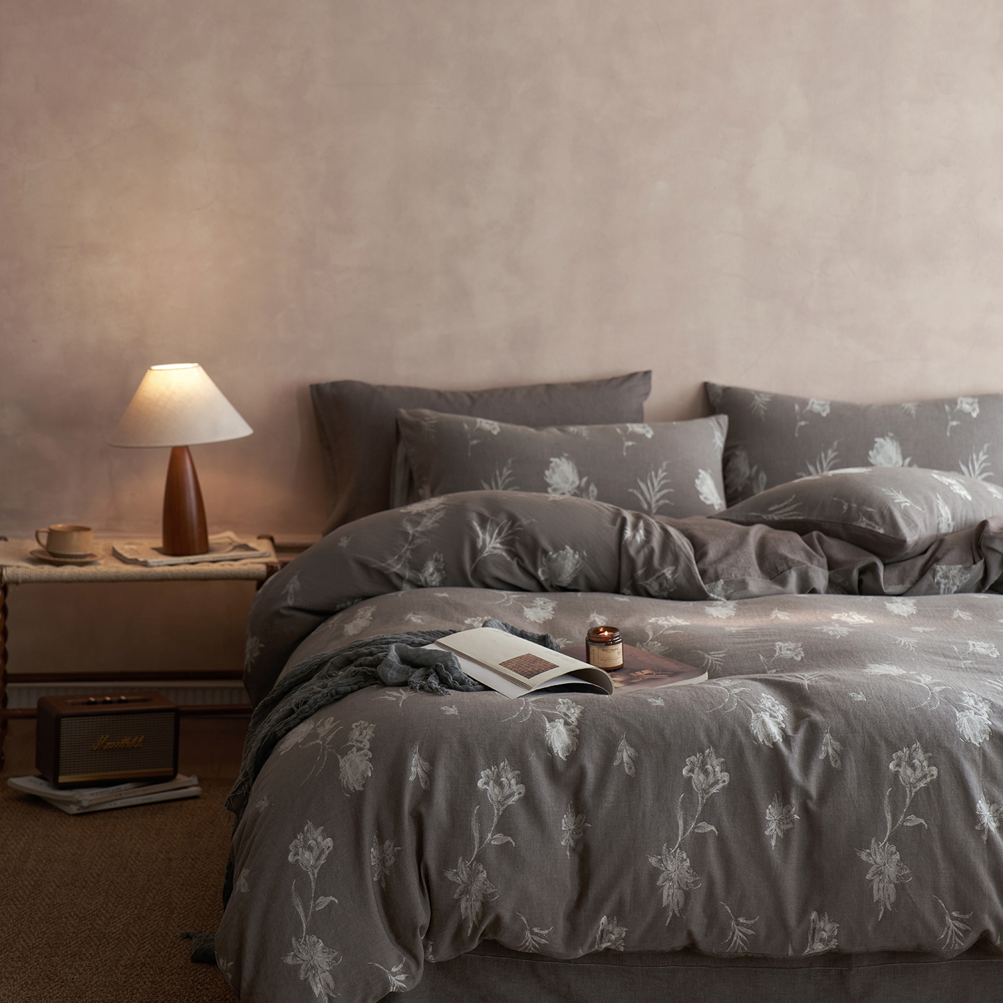 清雅福 2025新款A类全棉水洗色织大提花四件套 花意间-暗粉
