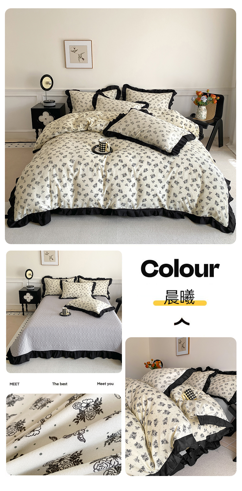 当前位置: 91家纺网 > 商品网购 > 床品套件 > 四件套 > 其它四件套 > 乐沐家纺 2025新款法式花边夹棉床盖四件套 晨曦