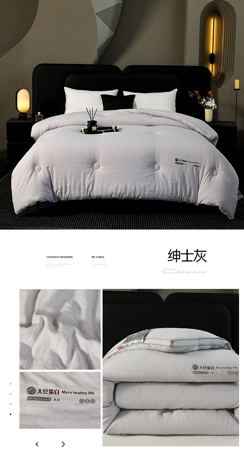 • 91家纺网 家纺一手货源 找家纺 蓝雀翎 2025新款原棉提花大豆被被子被芯 绅士灰