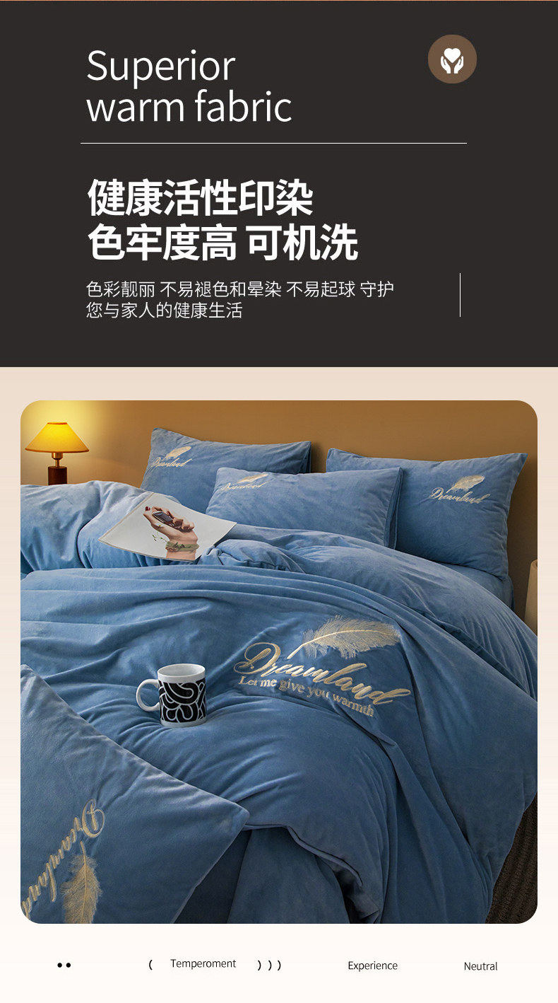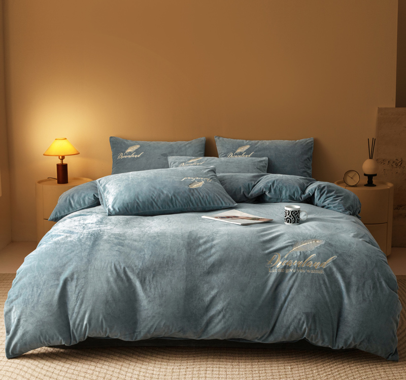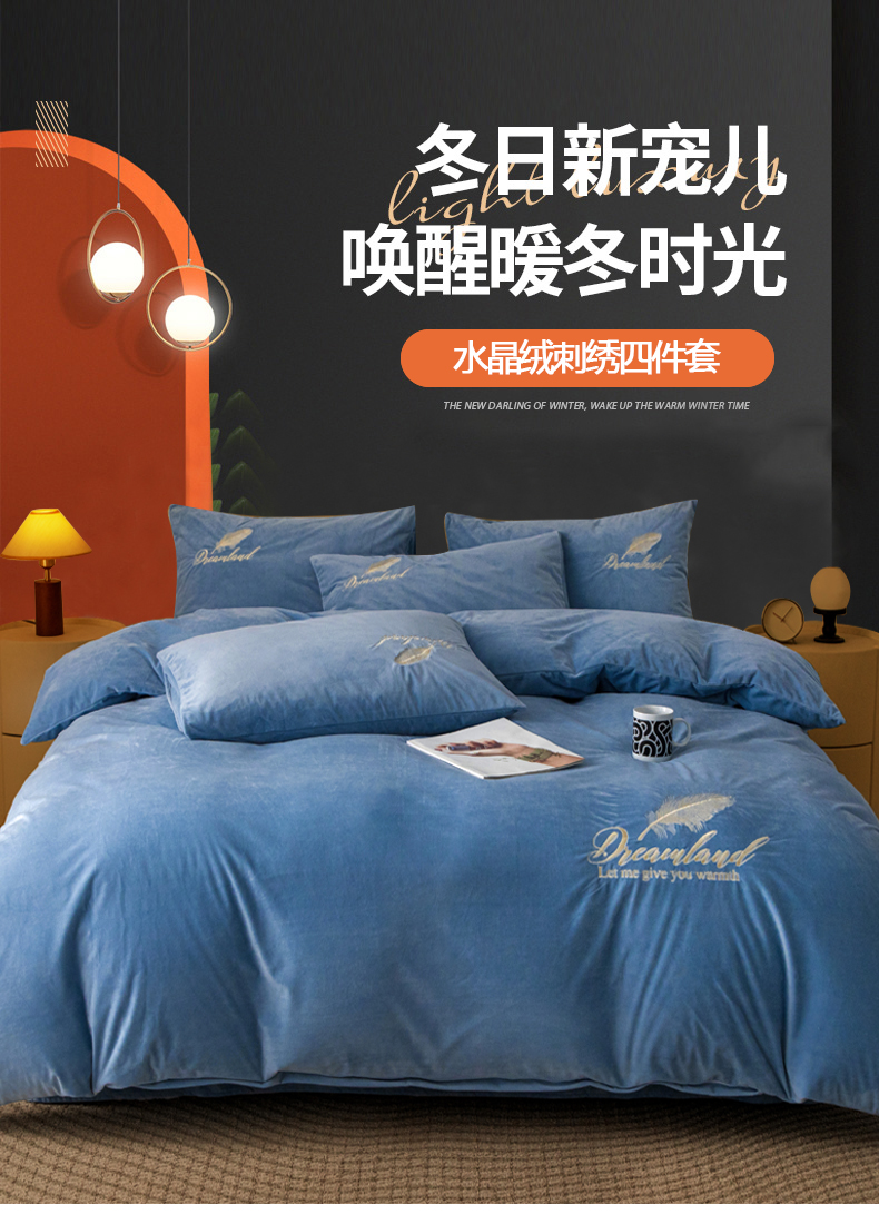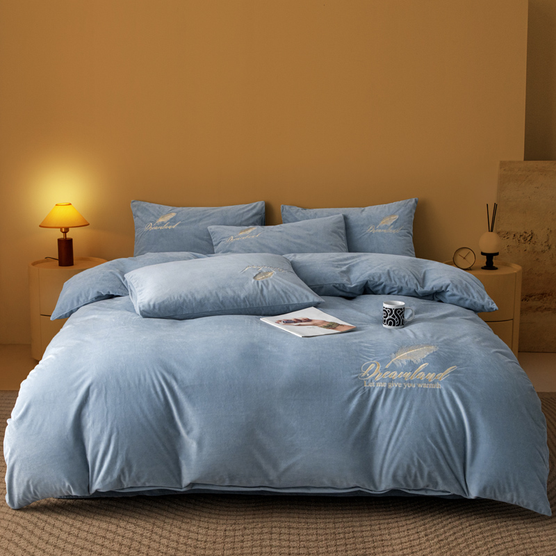 当前位置: 91家纺网 > 商品网购 > 床品套件 > 四件套 > 其它四件套 > 悦织湾家纺 2025新款水晶绒刺绣羽毛四件套纯色床单被套枕套学生宿舍单双人床三四件套 羽毛-浅蓝