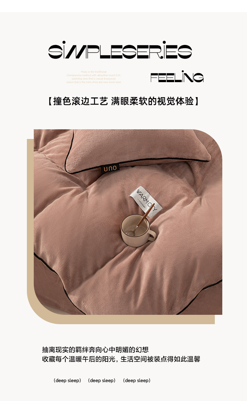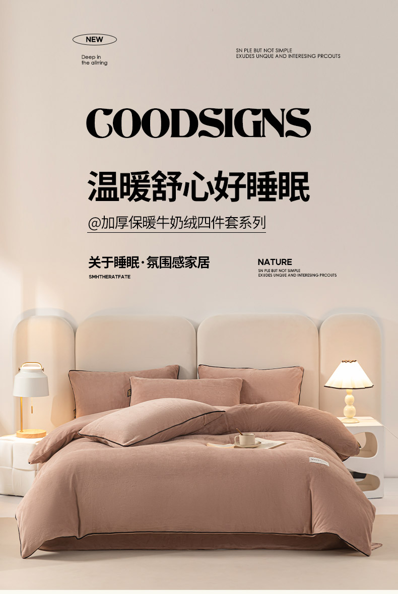 当前位置: 91家纺网 > 商品网购 > 床品套件 > 四件套 > 牛奶绒四件套 > 吾秀家居 2025秋冬新款简约撞色边滚绳牛奶绒四件套-浅爱 浅爱-橡木棕