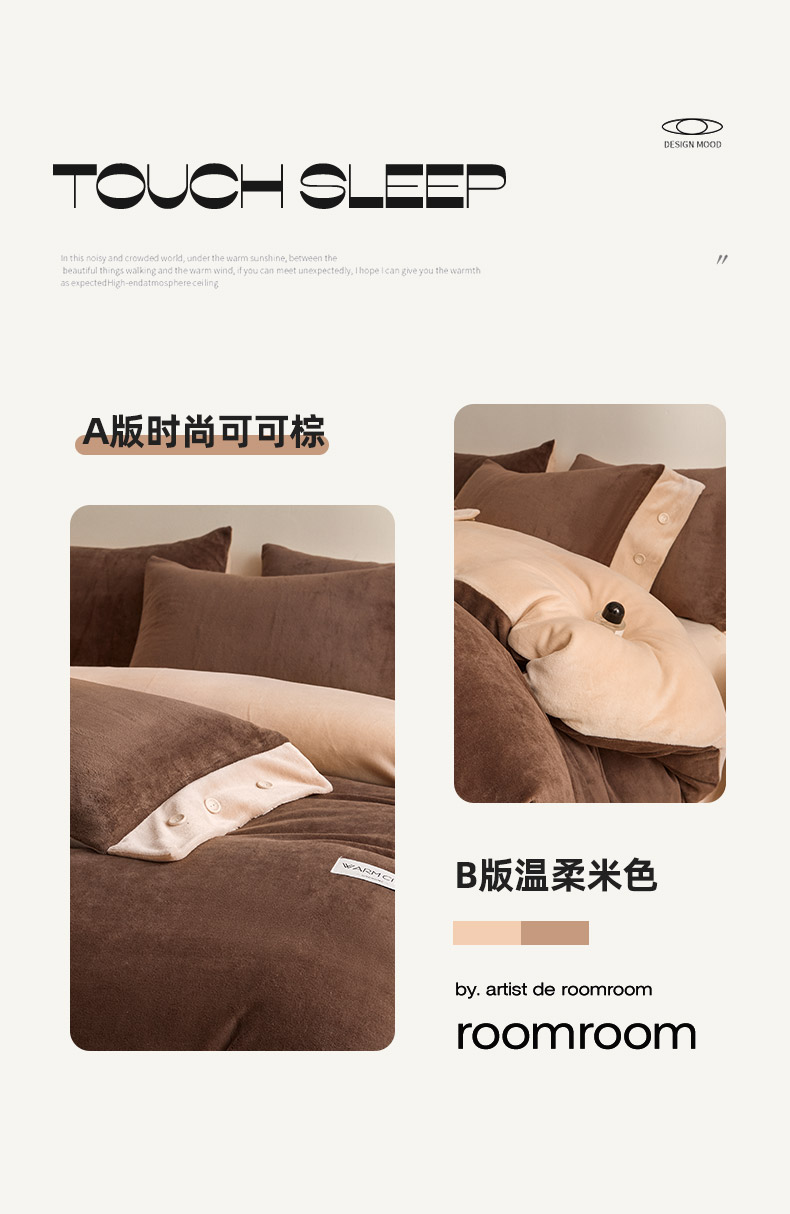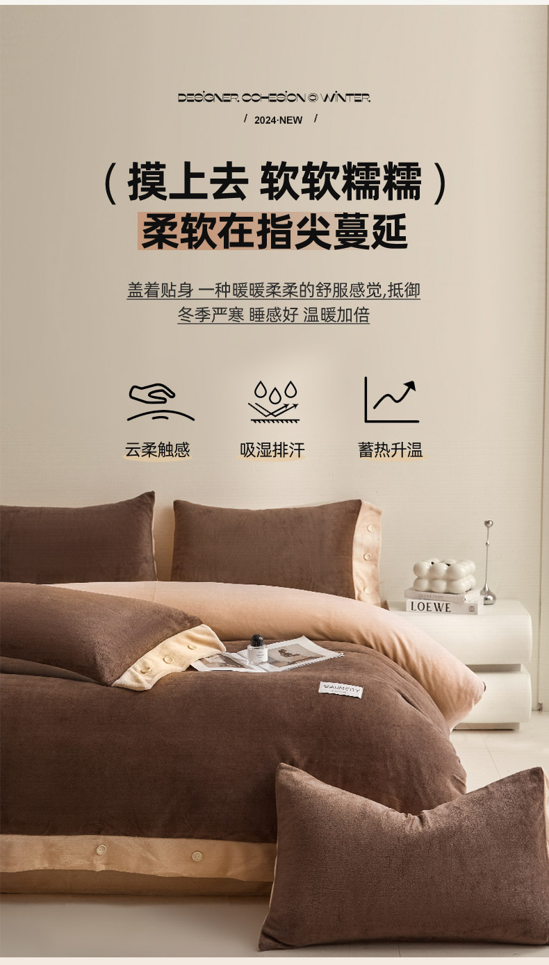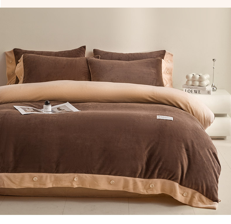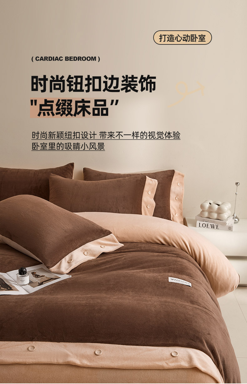 当前位置: 91家纺网 > 商品网购 > 床品套件 > 四件套 > 牛奶绒四件套 > 吾秀家居 2025秋冬新款撞色纽扣边牛奶绒四件套-纽扣 纽扣-可可棕