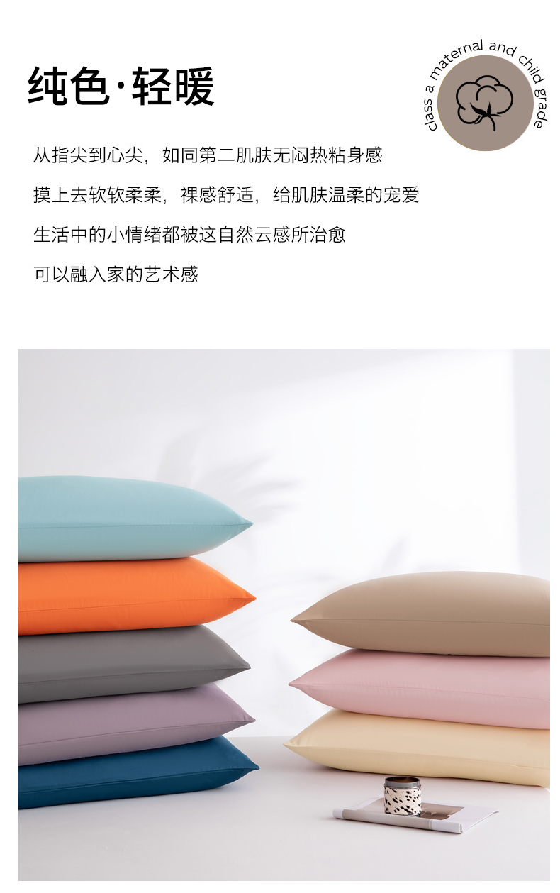 (总)寝柔家纺 2025新款60支纯棉磨毛长绒棉枕套,魅力紫,奶霜黄,暖橙,少女粉,水波兰,碳木灰,午夜蓝,杏驼