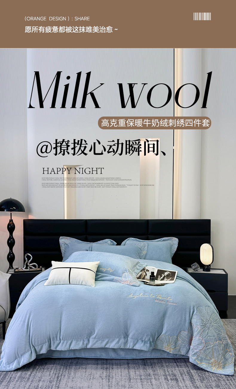 (总)2025新款全消光牛奶绒线条花刺绣+宽边四件套-绮丽