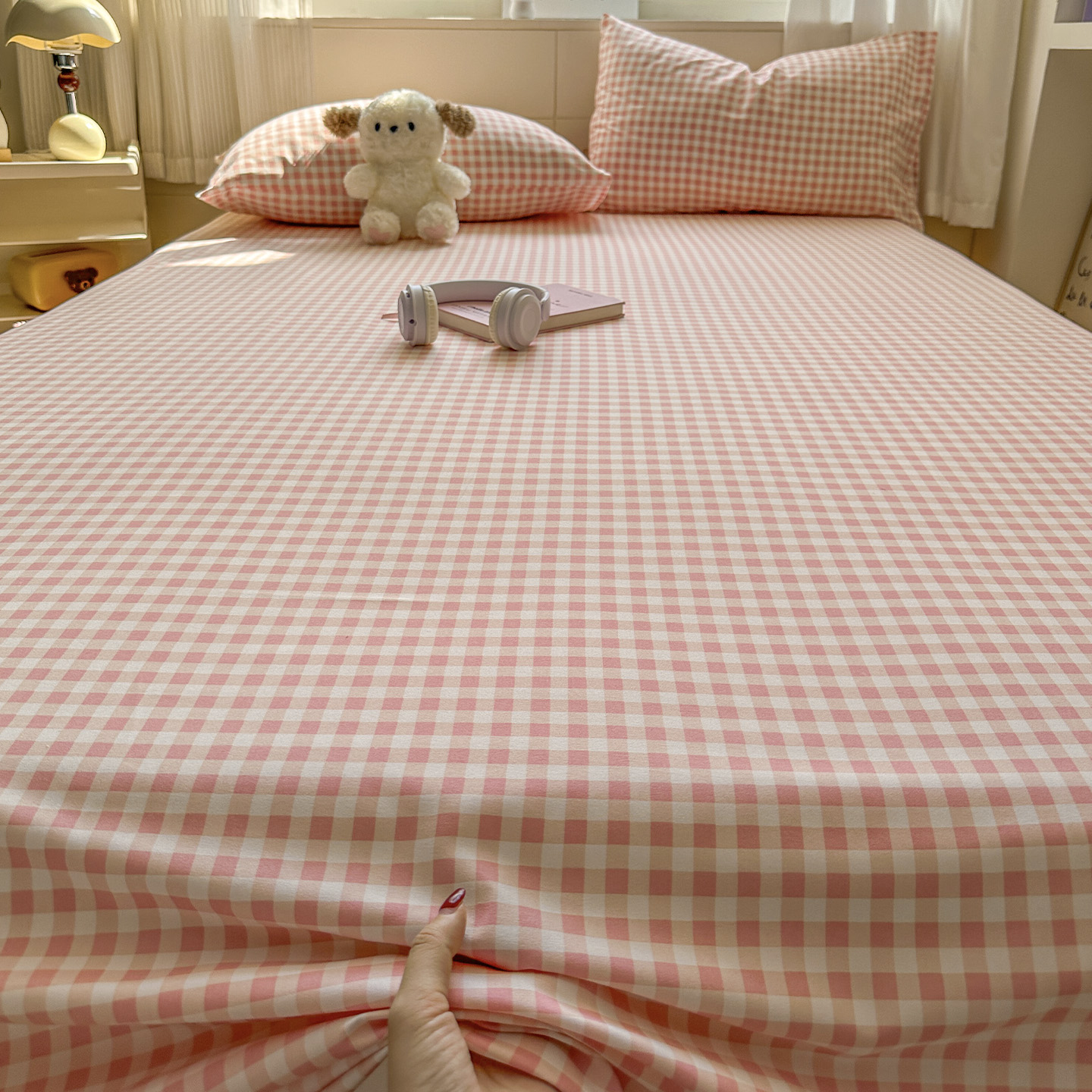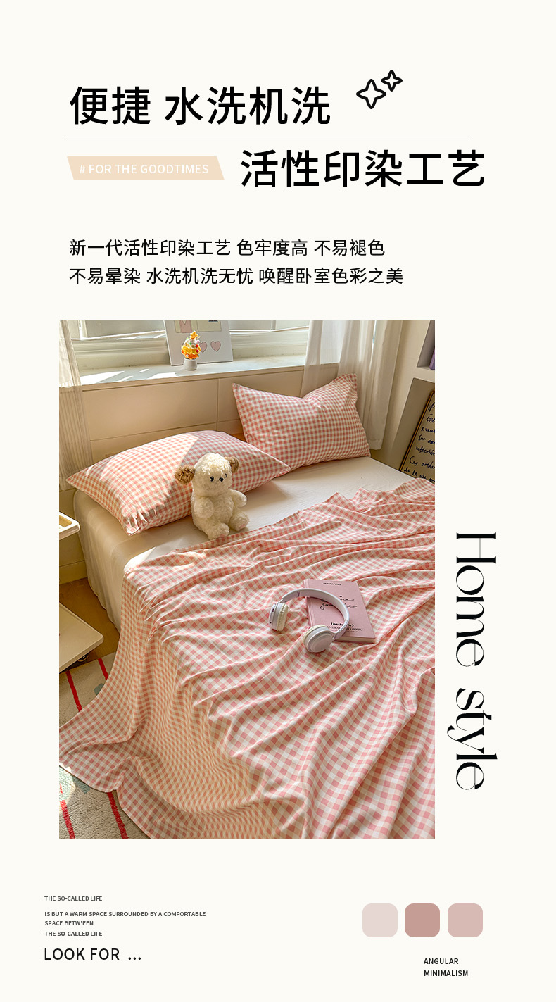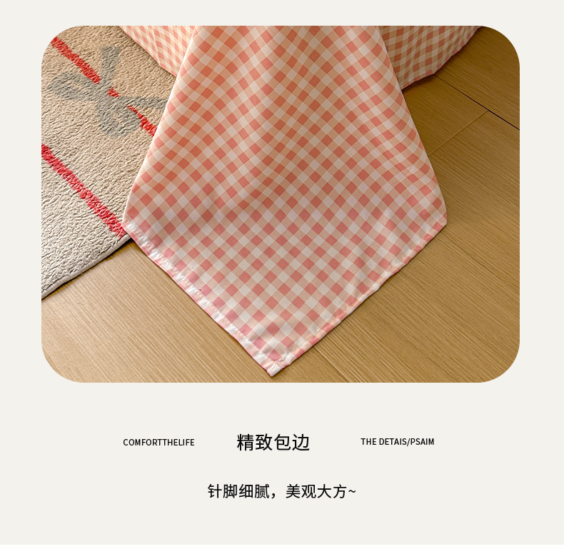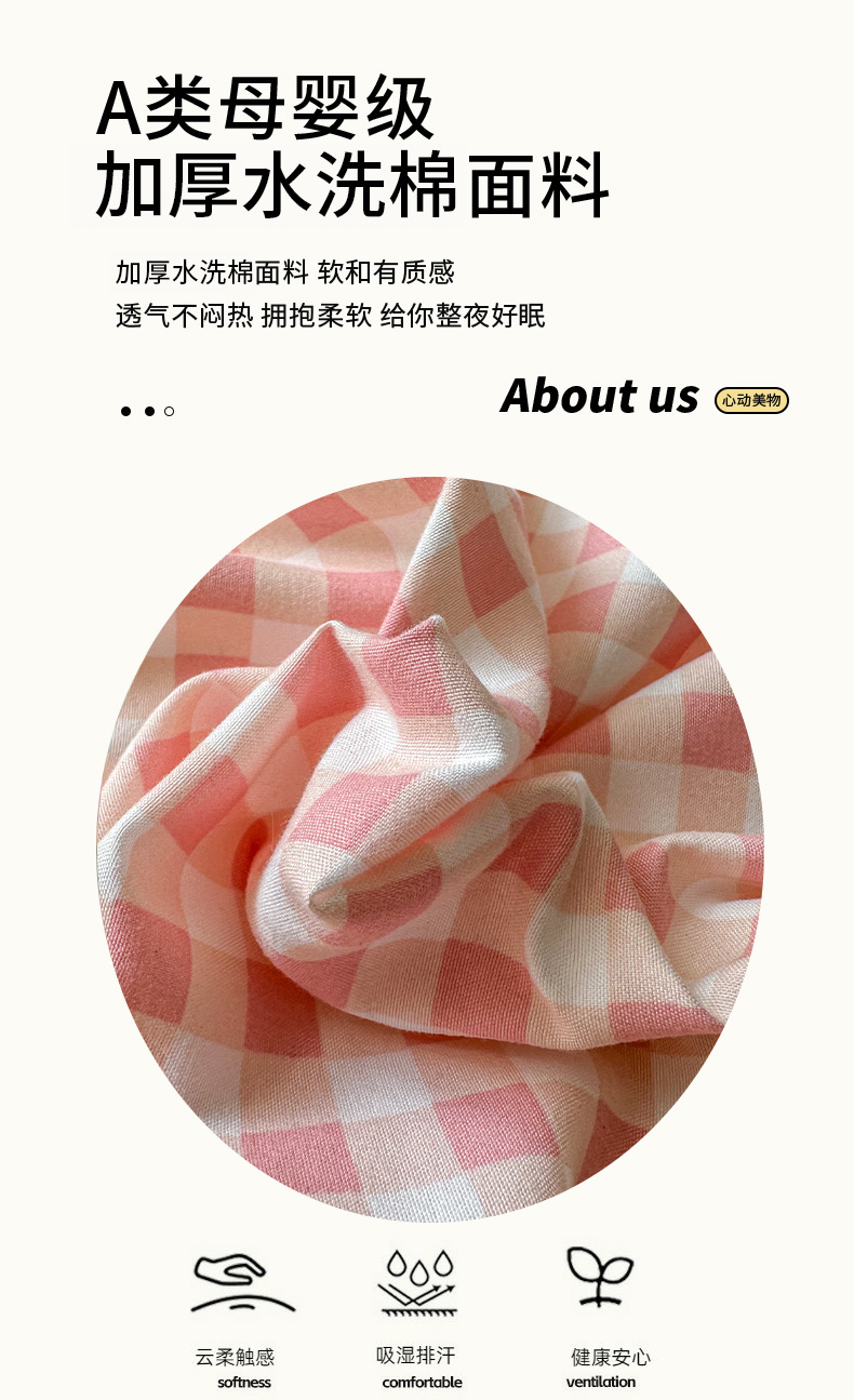 冕悠家纺 2025新款A类加厚水洗棉格子点点印花超柔单品床单枕套 粉格