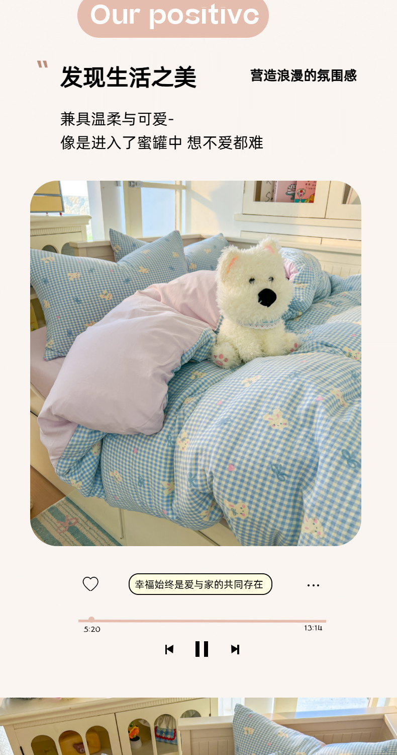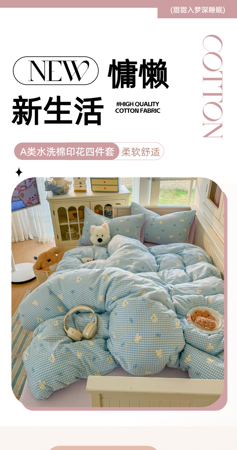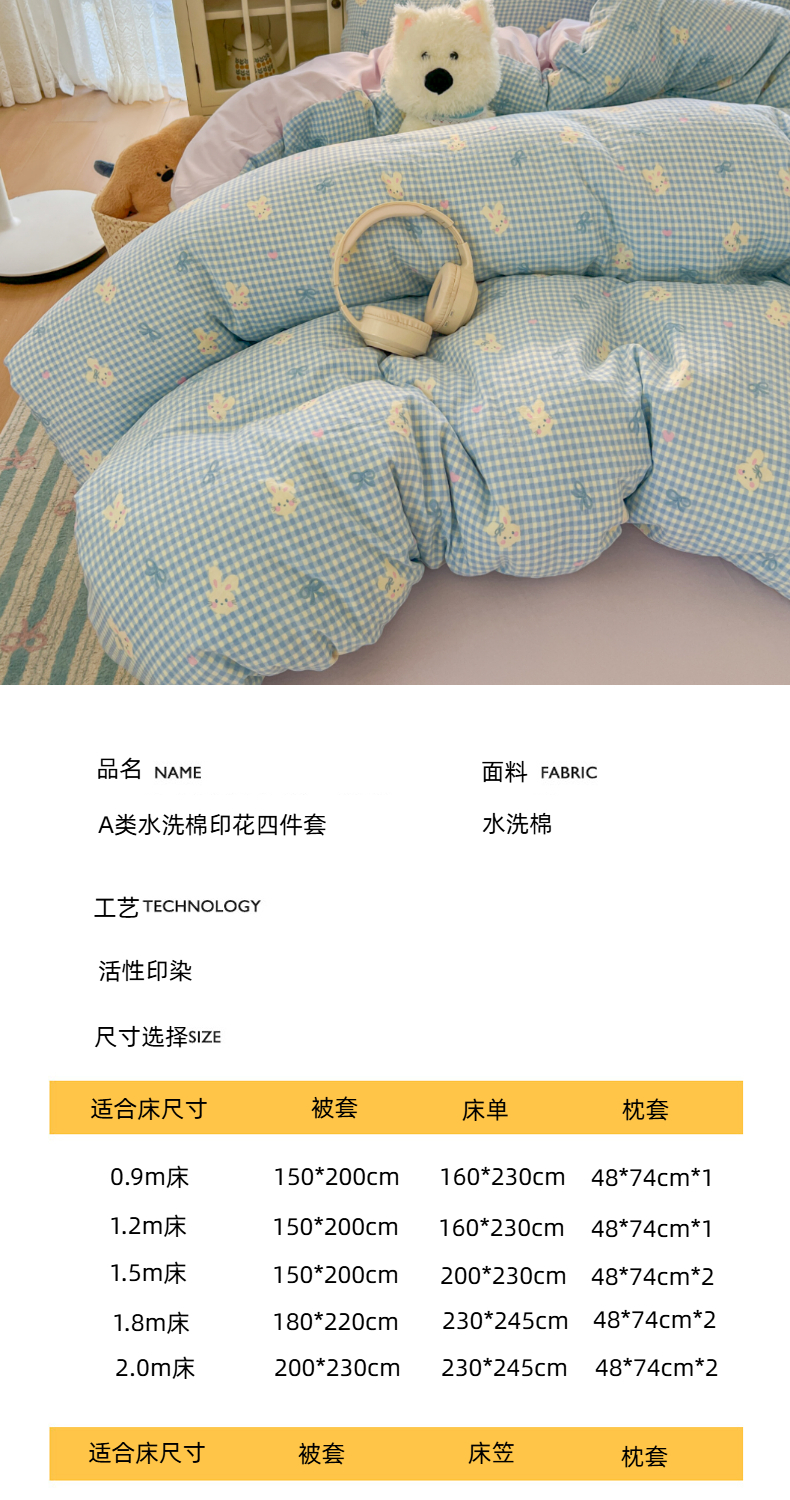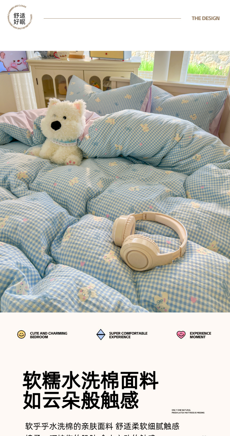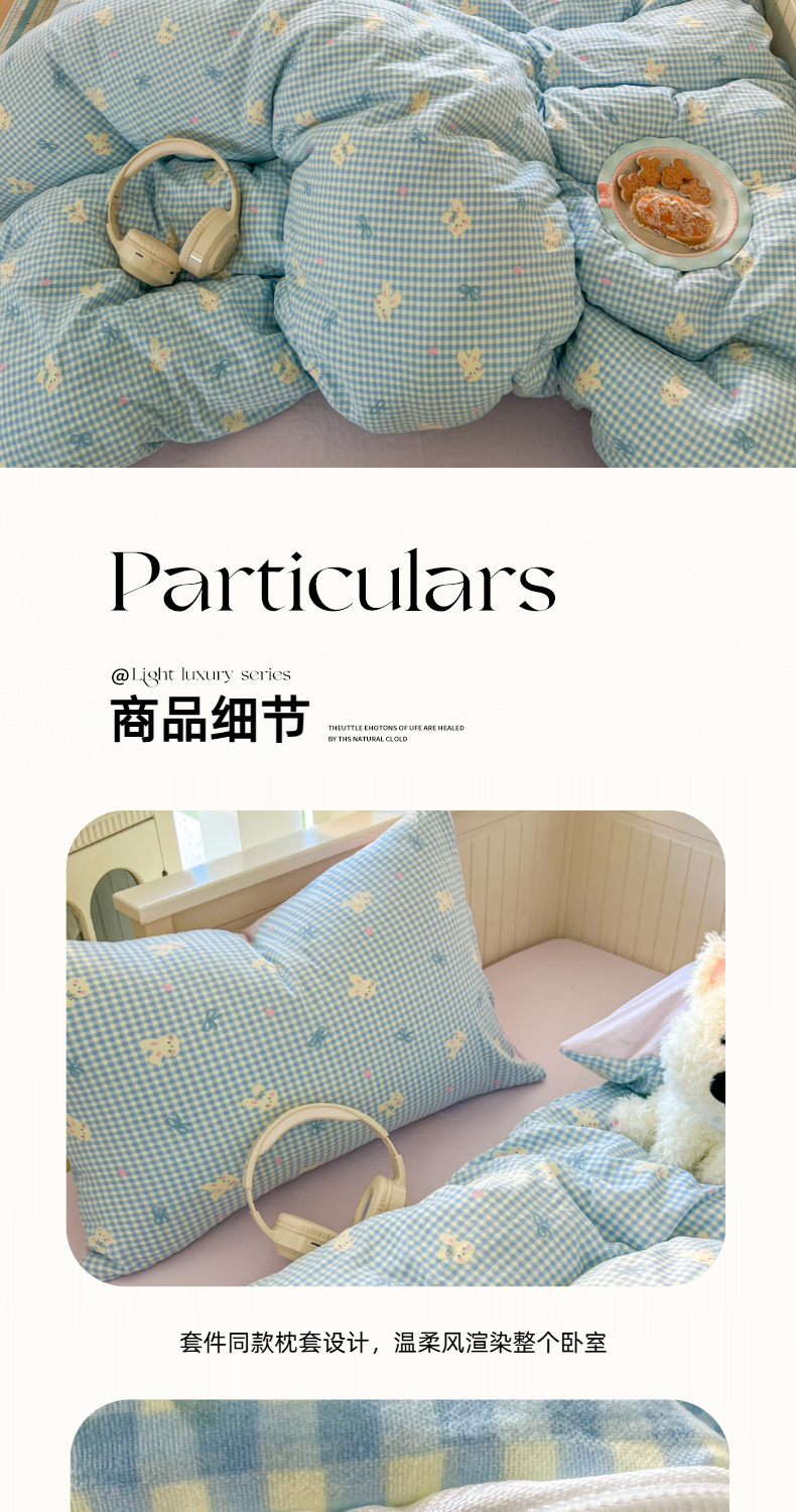 当前位置: 91家纺网 > 商品网购 > 床品套件 > 四件套 > 水洗棉四件套 > 冕悠家纺 2026新款超柔软105克卡通水洗棉四件套 提供买家秀 兔兔奶紫