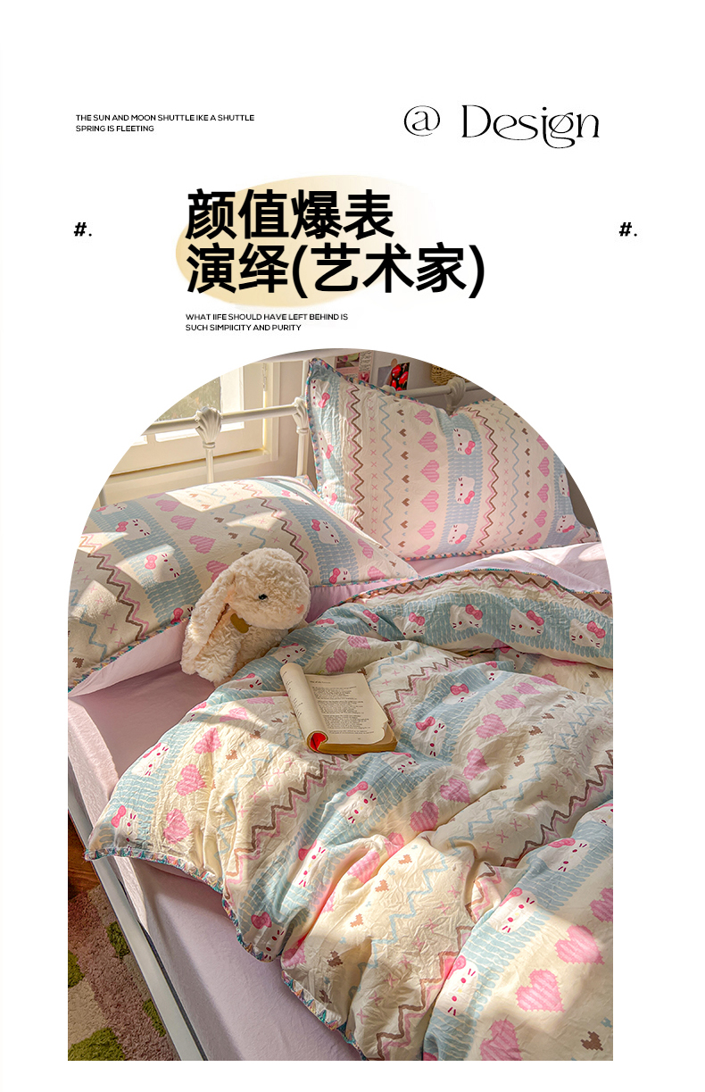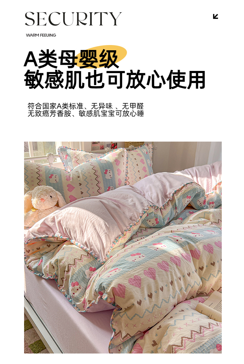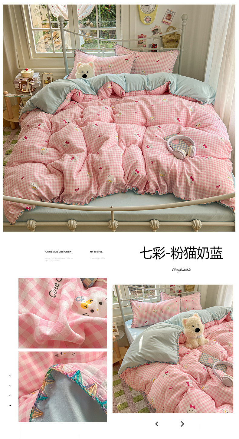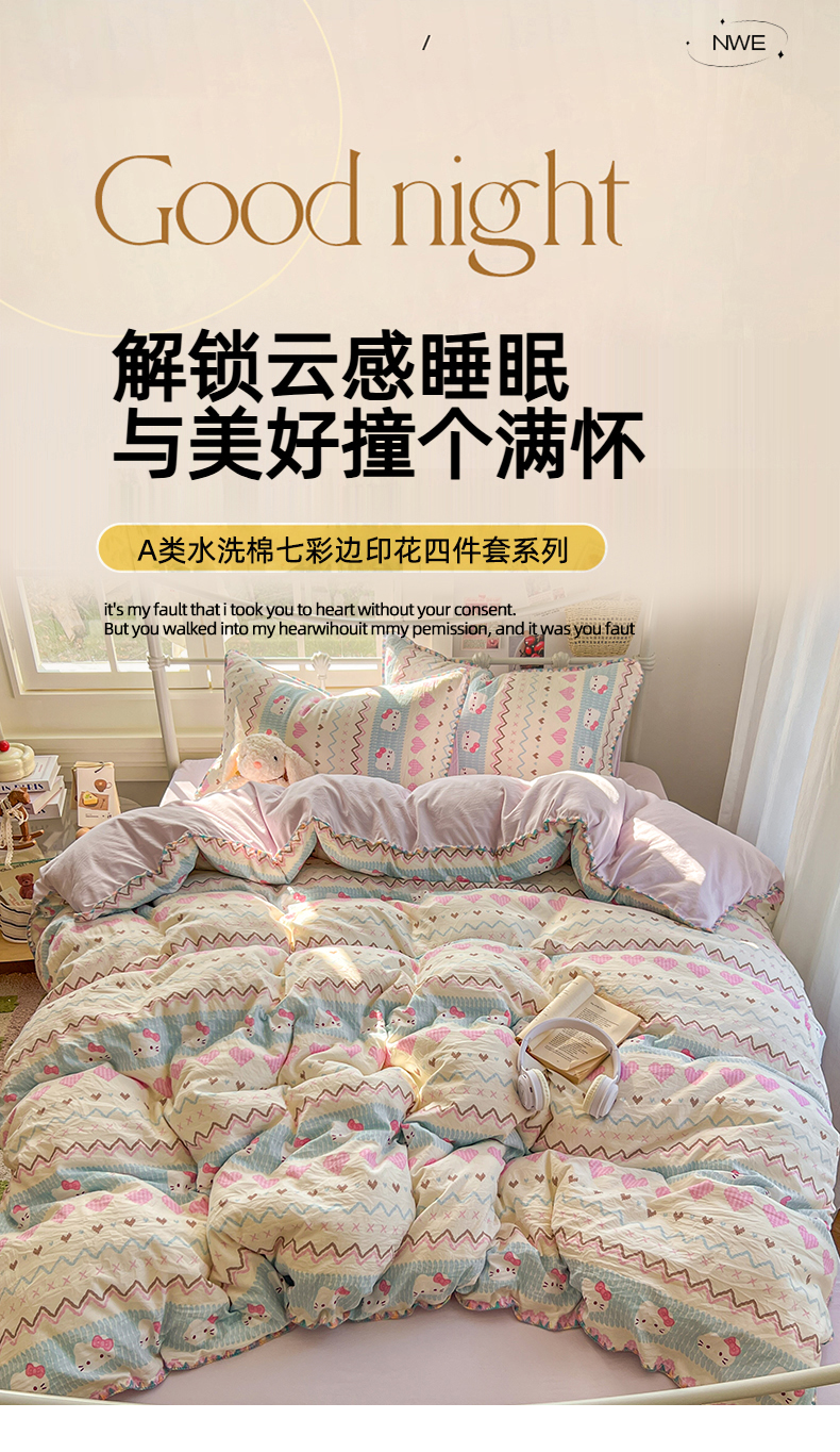 当前位置: 91家纺网 > 商品网购 > 床品套件 > 四件套 > 水洗棉四件套 > 冕悠家纺 2026新款超柔软卡通七彩贝壳边水洗棉四件套 提供买家秀 七彩-猫猫奶紫