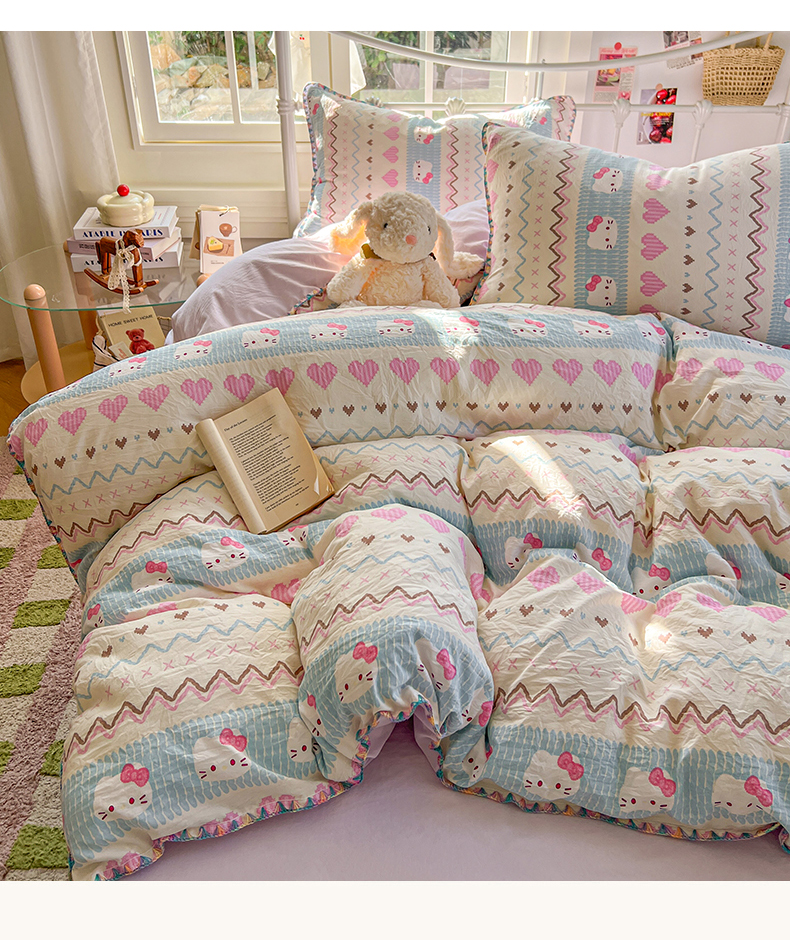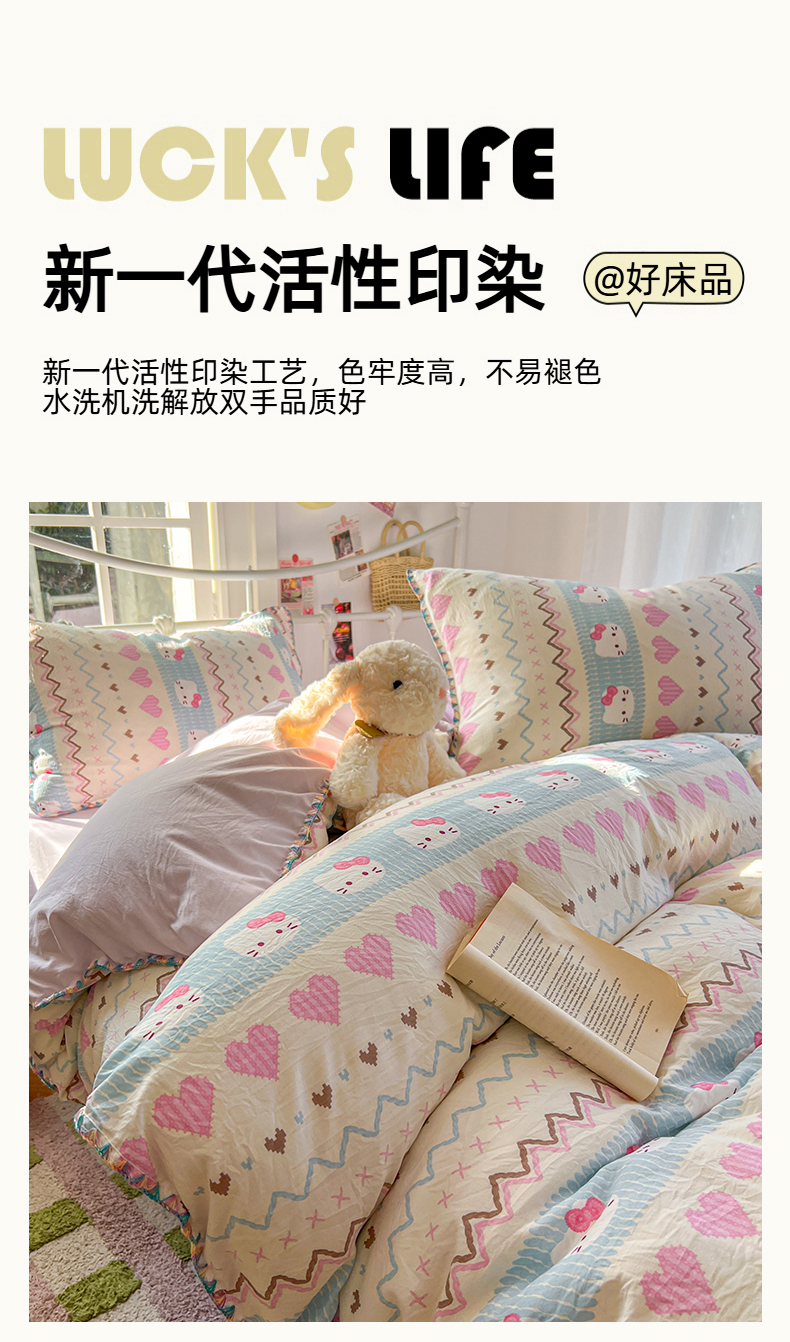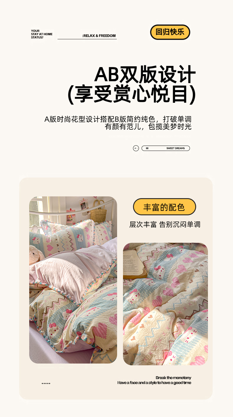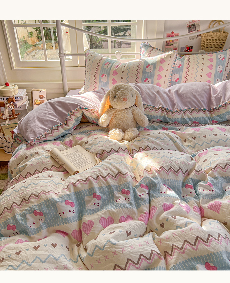 当前位置: 91家纺网 > 商品网购 > 床品套件 > 四件套 > 水洗棉四件套 > 冕悠家纺 2026新款超柔软卡通七彩贝壳边水洗棉四件套 提供买家秀 七彩-猫猫奶紫