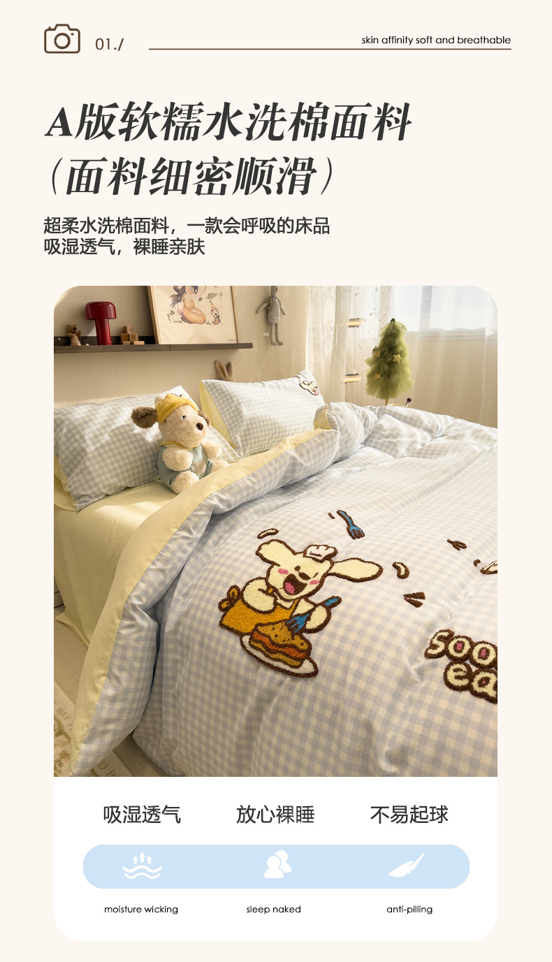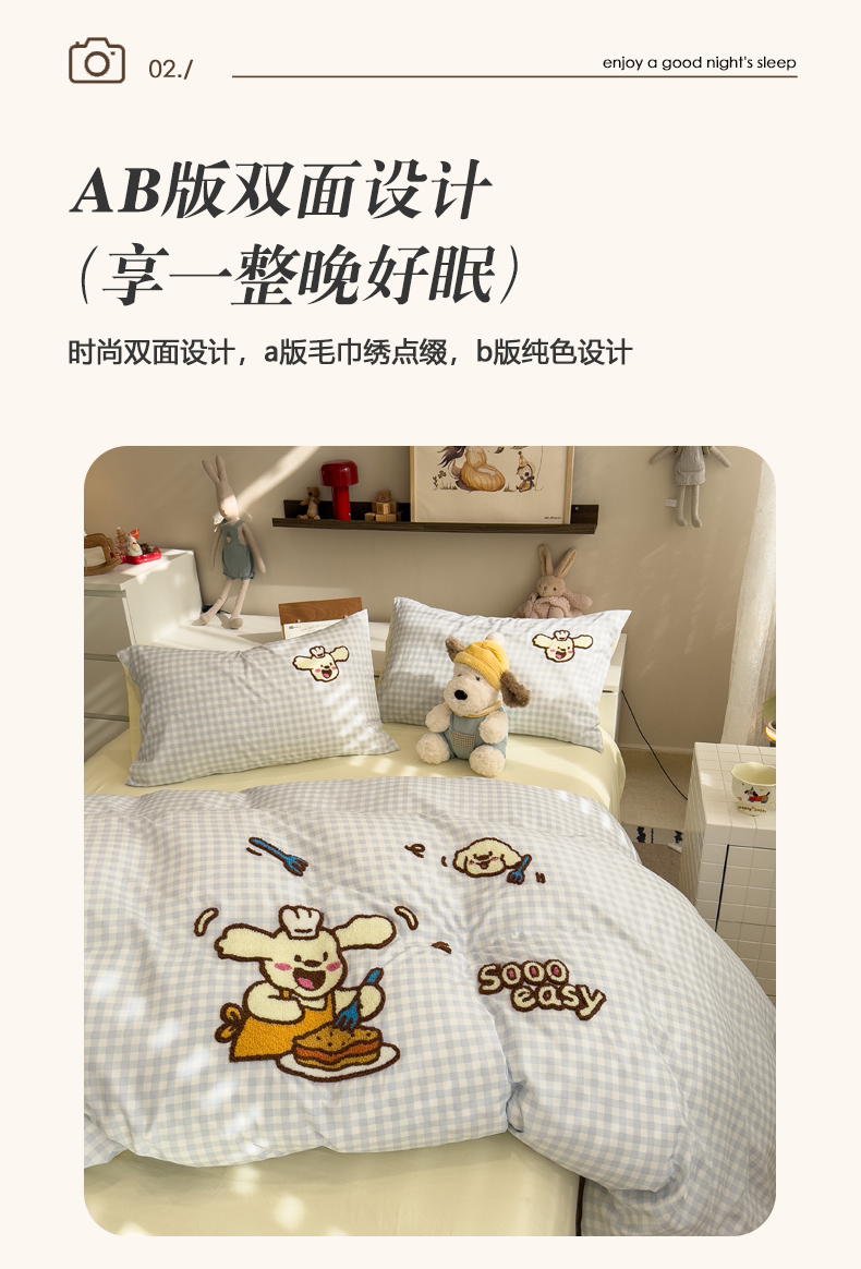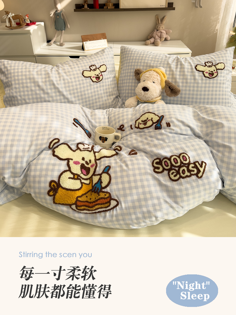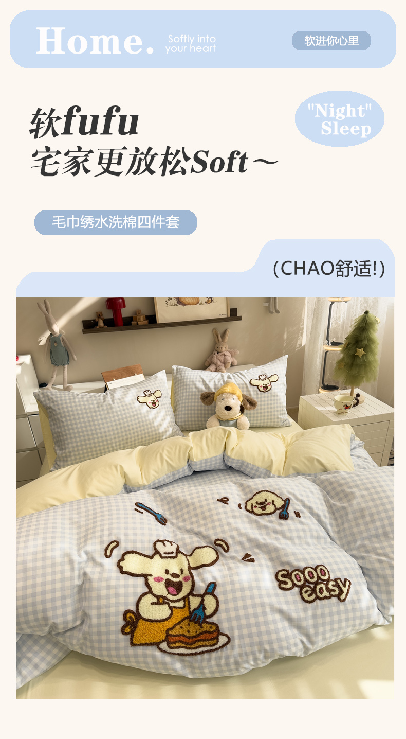 当前位置: 91家纺网 > 商品网购 > 床品套件 > 四件套 > 毛巾绣四件套 > 曼谷家纺 2026新款卡通水洗棉毛巾绣四件套被套 超美味-兰小格-芝士