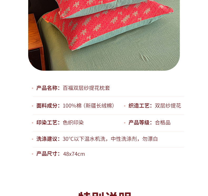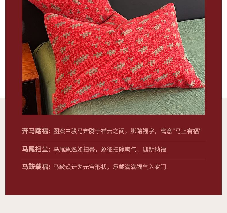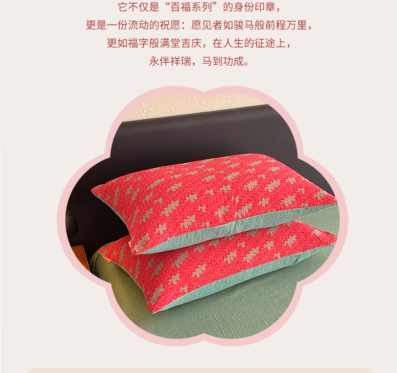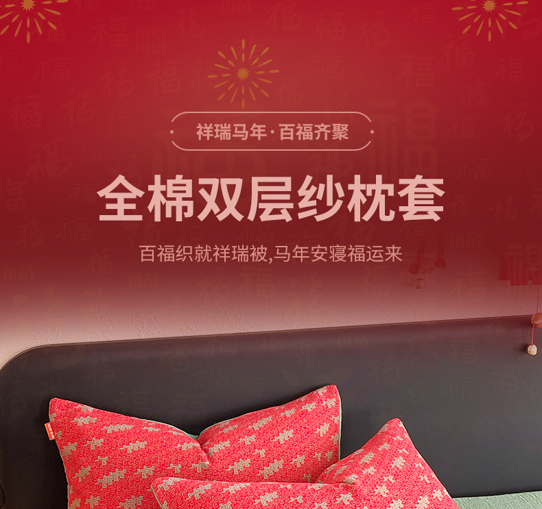 商品名称:春皖家纺 2026新款全棉色织双层纱提花百福系列拉链款-单枕套 红赤兔