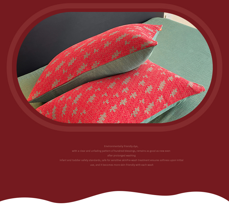春皖家纺 2026新款全棉色织双层纱提花百福系列拉链款-单枕套 红赤兔