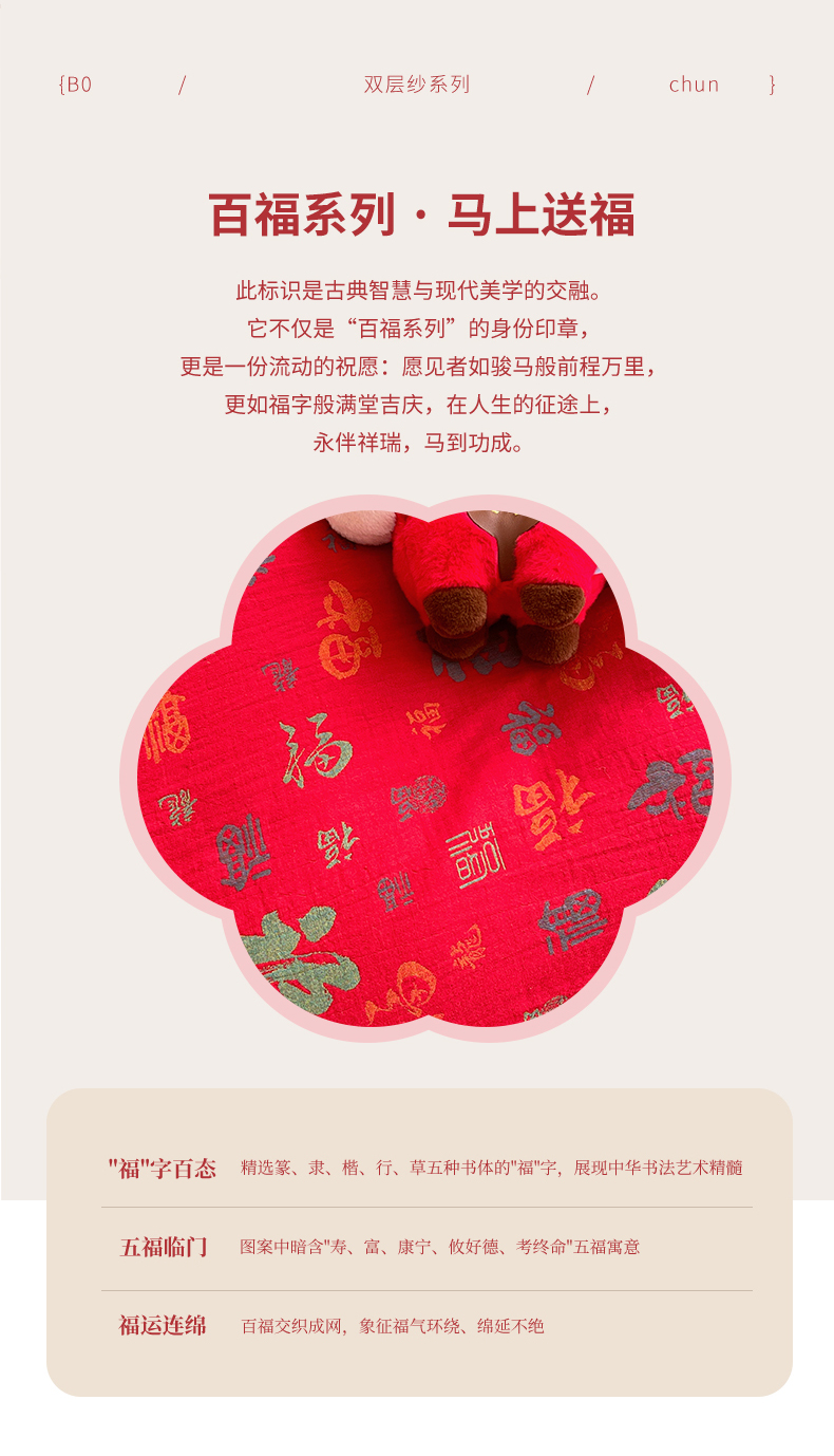 商品名称:(总)春皖家纺 2026新款全棉色织双层纱提花百福系列拉链款-单被套