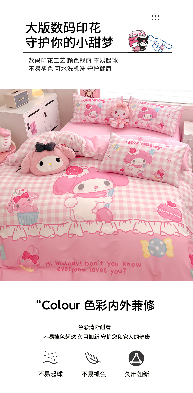 当前位置: 91家纺网 > 商品网购 > 床品套件 > 四件套 > 全棉普通四件套 > 暮思家居 2026新款正版授权三丽鸥大版全棉纯棉数码印花纯棉四件套系列-第一批 大版-星黛美乐蒂