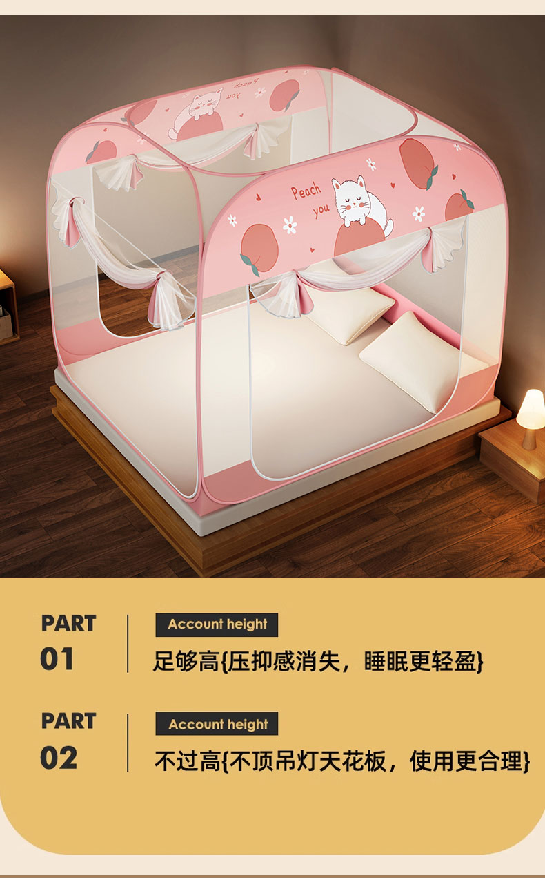 商品名称:佳梦家纺 2026新款三开门蒙古包印花蚊帐 蜜桃猫