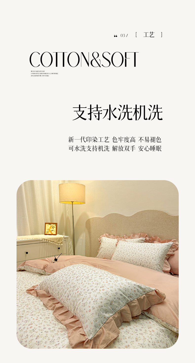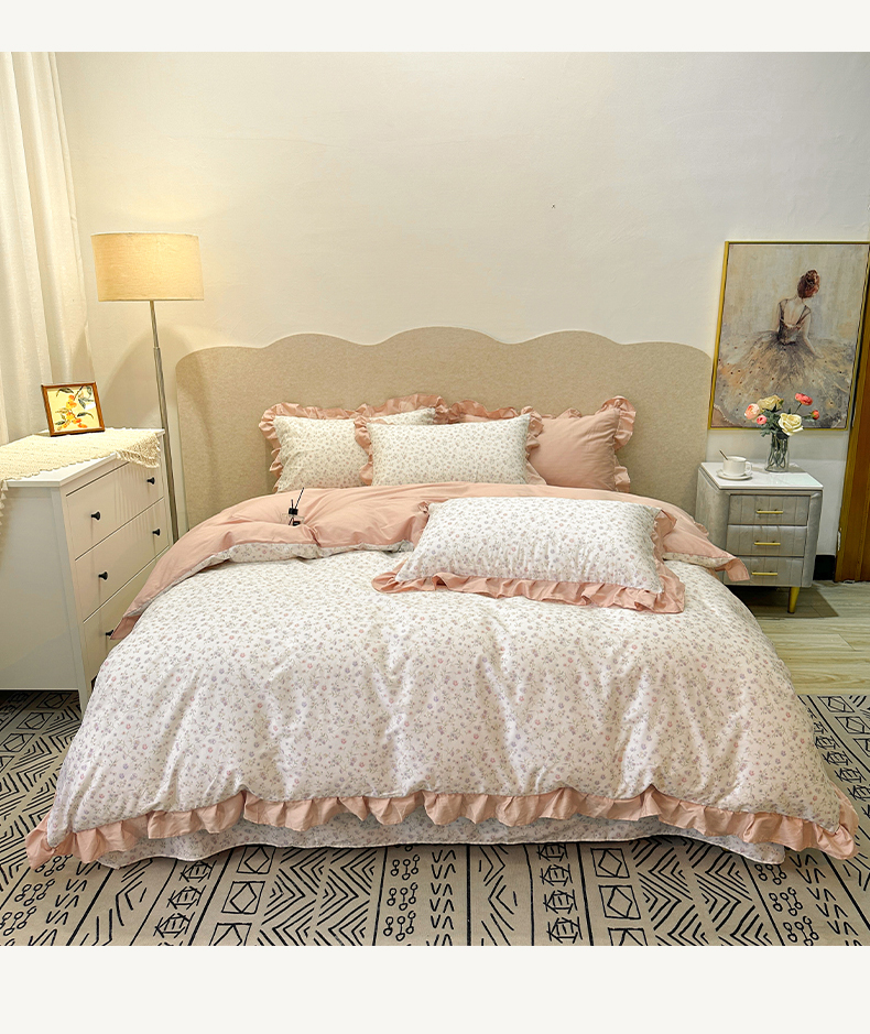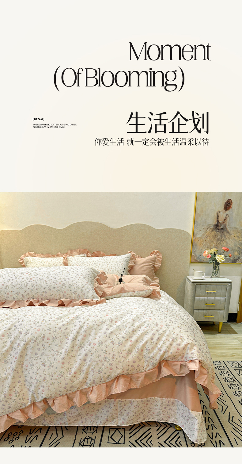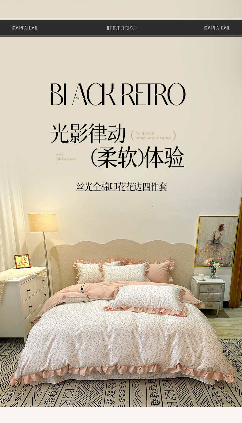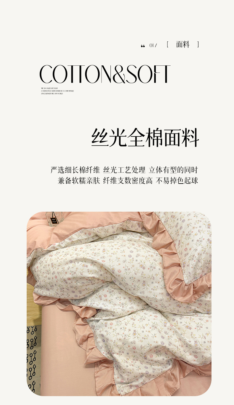 当前位置: 91家纺网 > 商品网购 > 床品套件 > 四件套 > 全棉普通四件套 > 橙艺家居 2026新款丝光全棉纯棉印花花边四件套-爱丽丝柔棉 严格控价,券后、活动后标准不得低于248元,以此类推。 茶语山