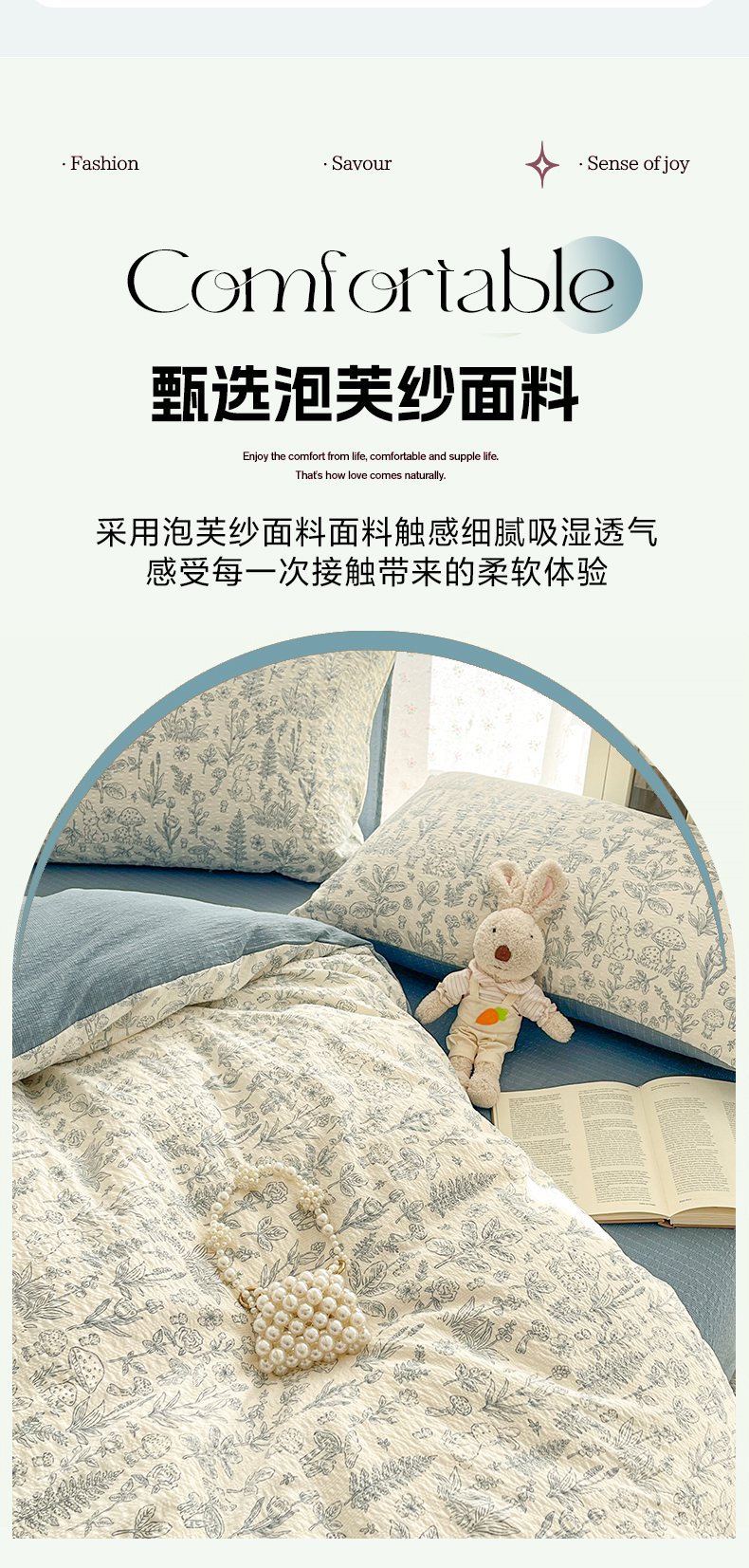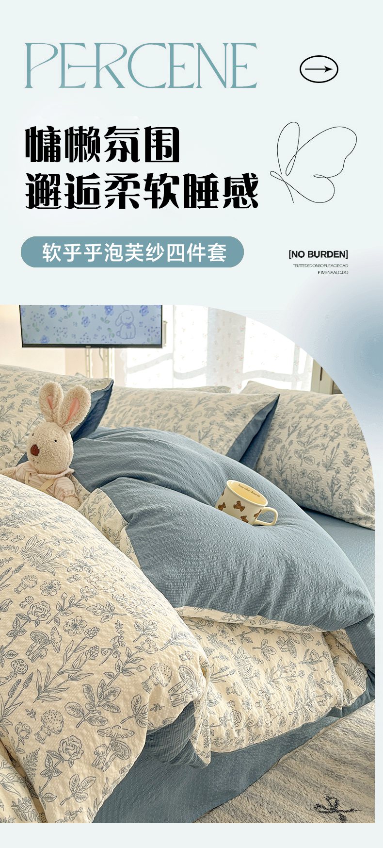 当前位置: 91家纺网 > 商品网购 > 床品套件 > 四件套 > 其它四件套 > 玉海棠家纺 2026新款直播爆款高品质高克重泡泡纱泡芙纱四件套 浅陌