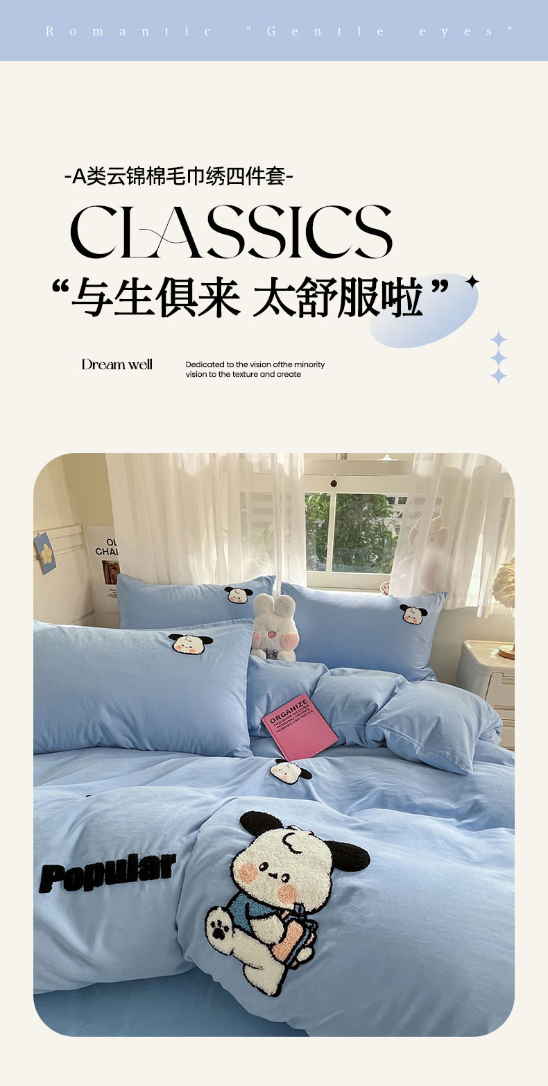 当前位置: 91家纺网 > 商品网购 > 床品套件 > 四件套 > 其它四件套 > 优卡迪家纺馆 2026新款A类云锦棉毛巾绣四件套下载文件包含买家秀 俏俏狗-蓝