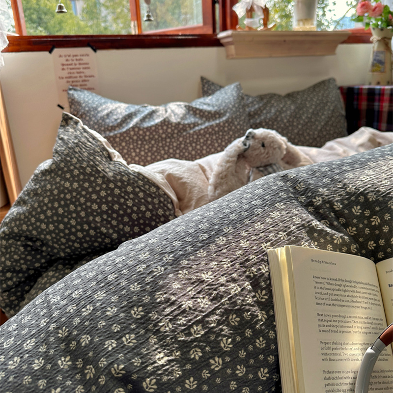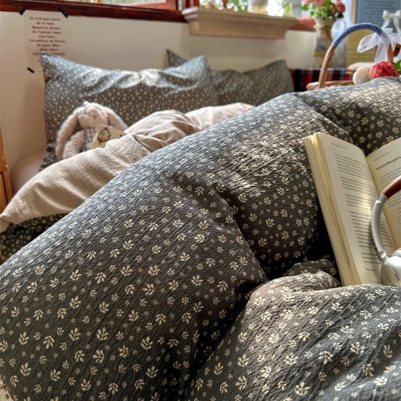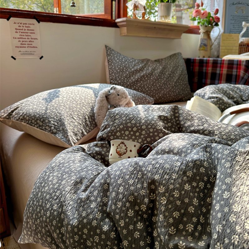 当前位置: 91家纺网 > 商品网购 > 床品套件 > 四件套 > 化纤活性四件套 > 阿曼达 2026新款日韩系复古印花小碎花软糯贴肤慵懒伴眠超治愈的床单床笠款四件套 小印-浅花.灰