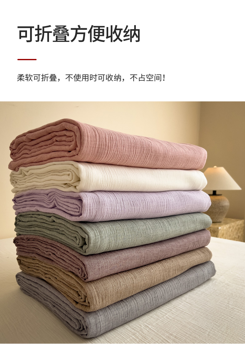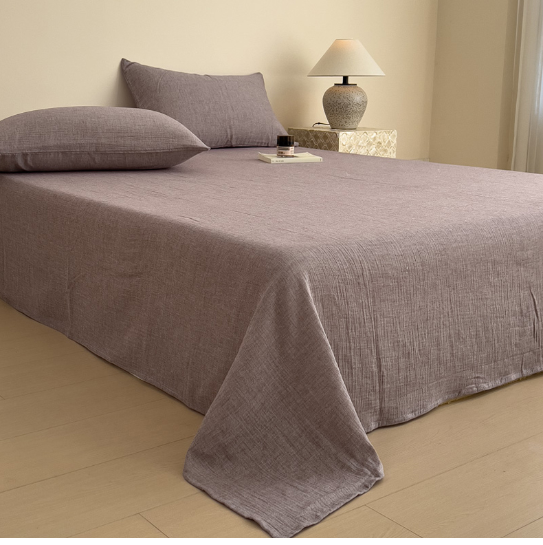 (总)席世家 2026新款纯色皱皱纱床单,芭乐粉,可可咖,梦幻紫,米白,奶茶棕,泡沫灰,森林绿,烟灰兰