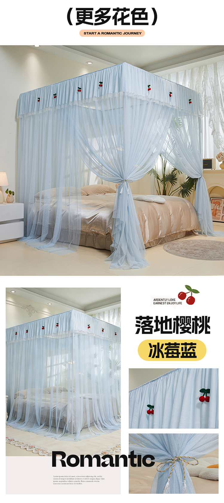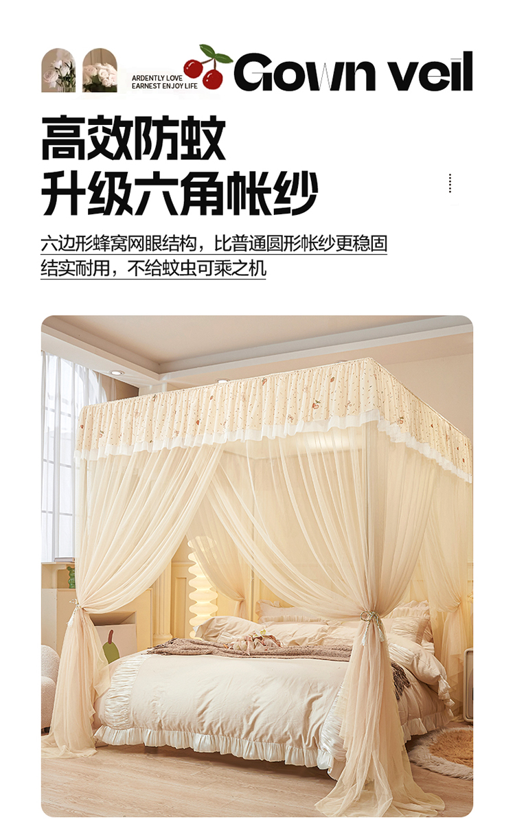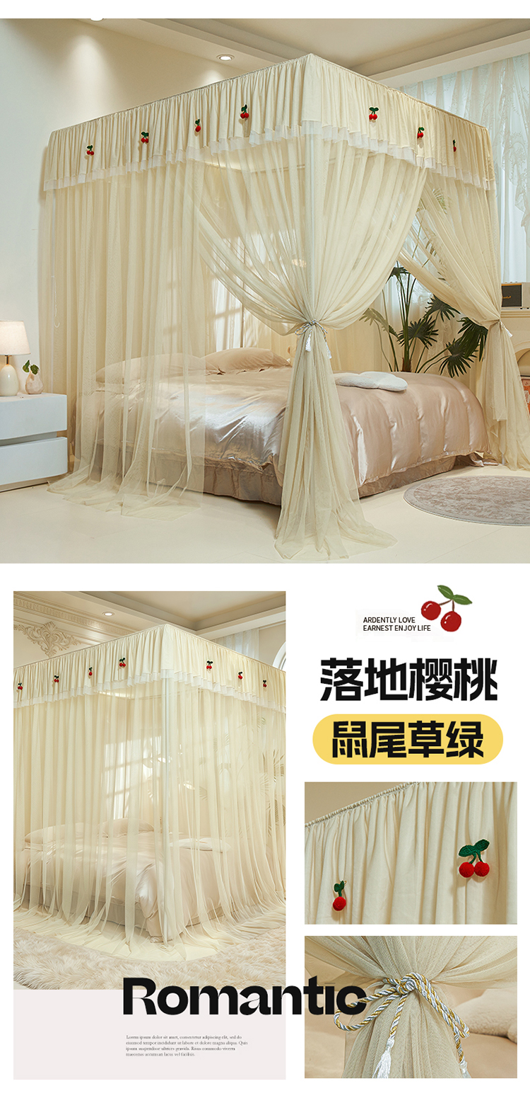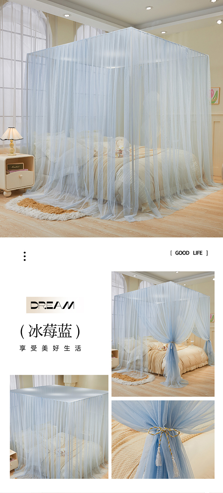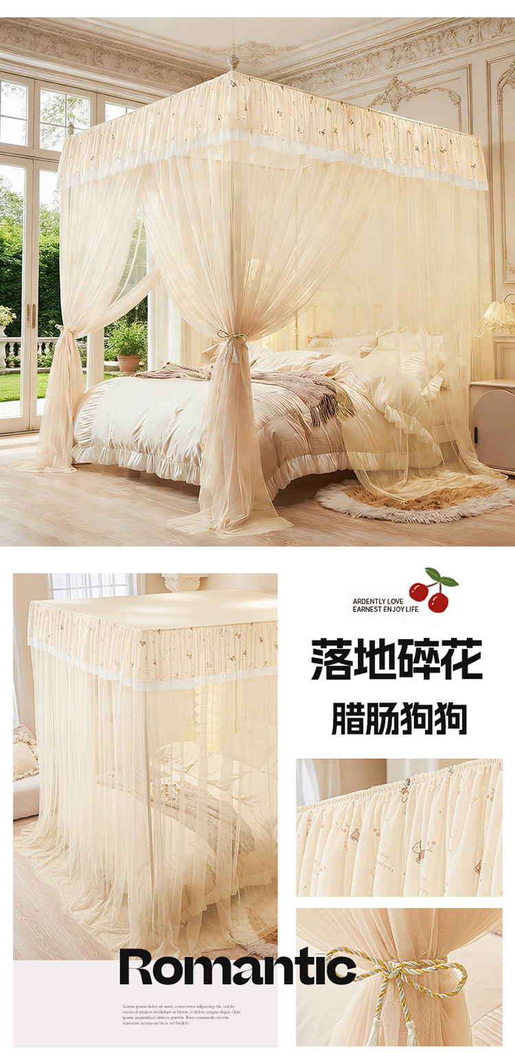 (总)落地蚊帐宫廷花边款简约清新自然唯美防蚊加粗支架