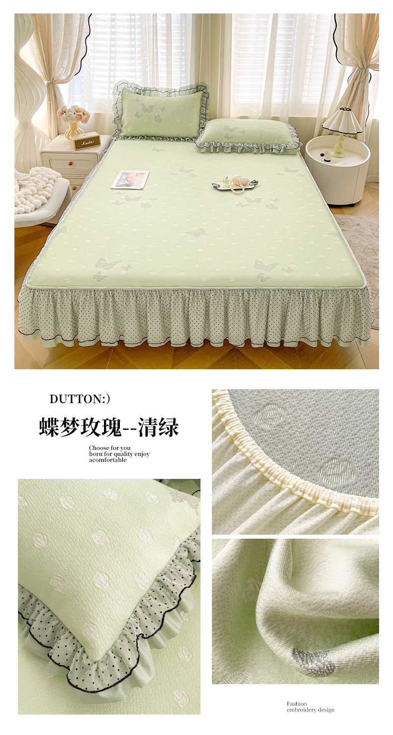 当前位置: 91家纺网 > 商品网购 > 床上用品 > 凉席 > 其他凉席 > 眠势力 2026新款冰豆豆床裙款床笠夏天冰凉豆豆空调席子带花边床裙床笠二合一 甜梦-清绿