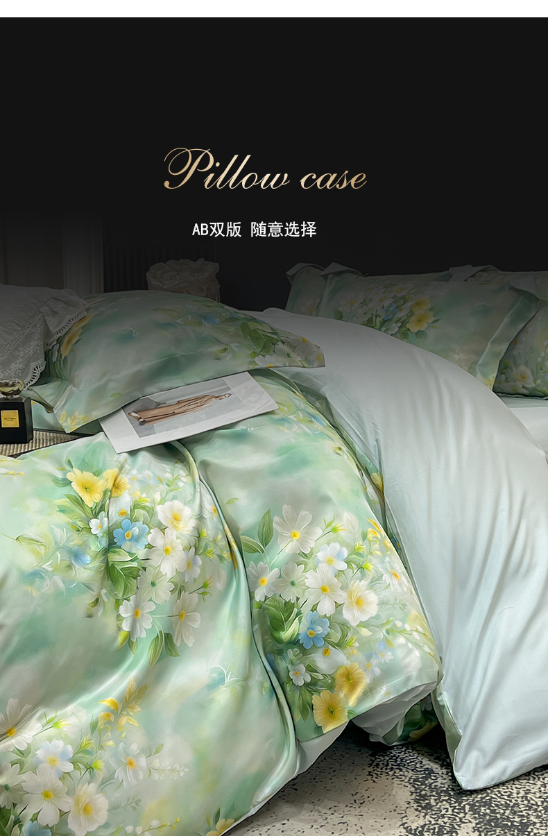 (总)优贝家纺 2026新款100%莱赛尔天丝面料数码印花天丝夏被四件套,花开半夏,陌上花开-粉,诺曼花园,倾城