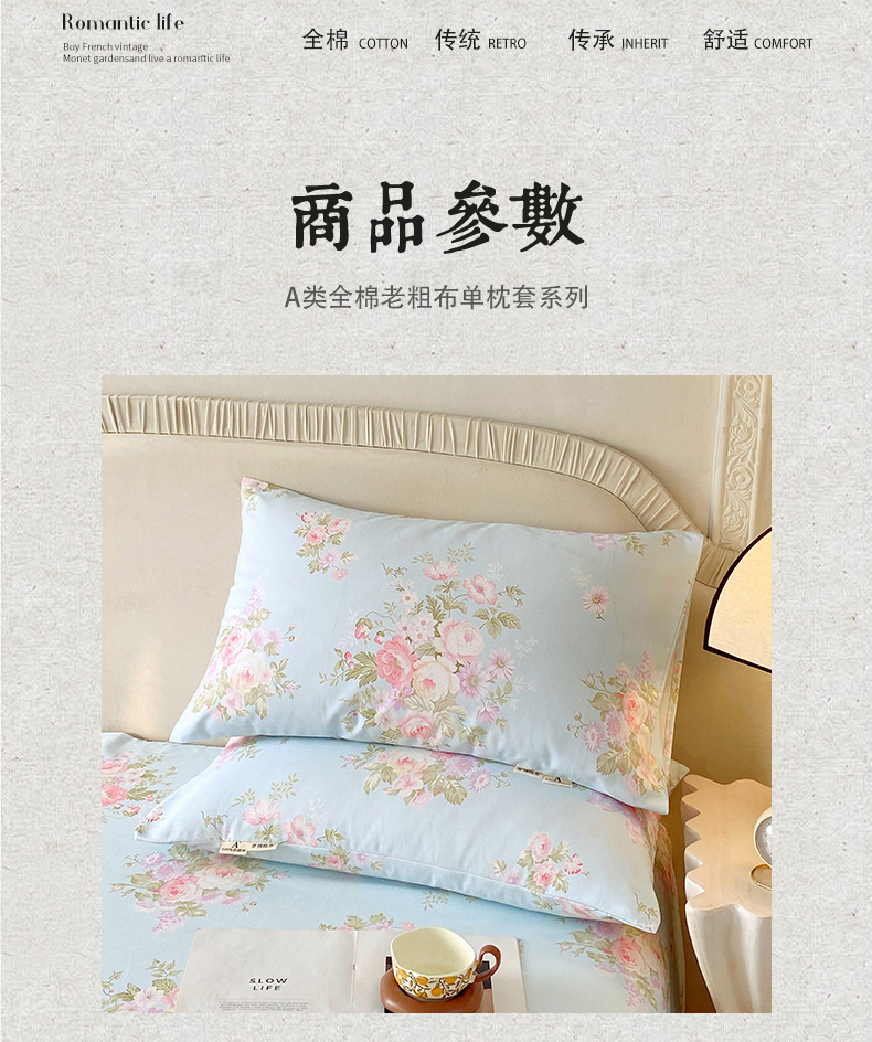 商品名称:春皖家纺 2026新款全棉老粗布普通款单枕套枕套单件 向晚