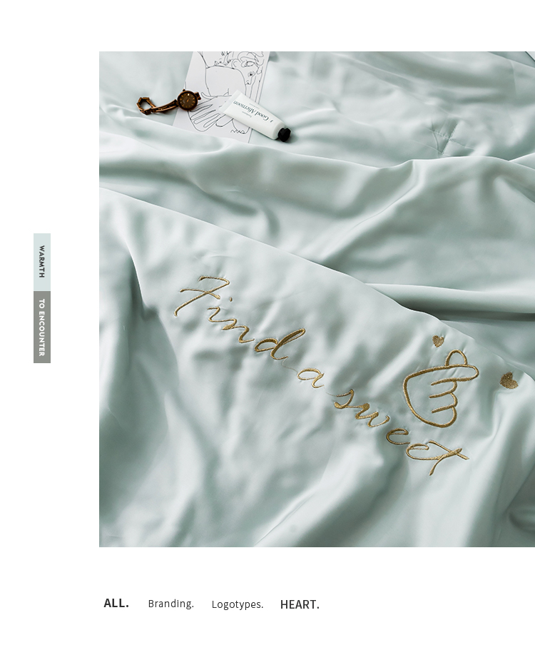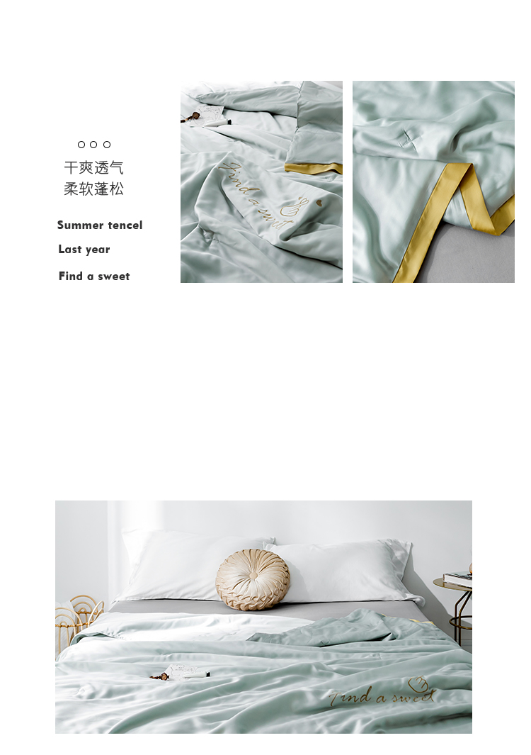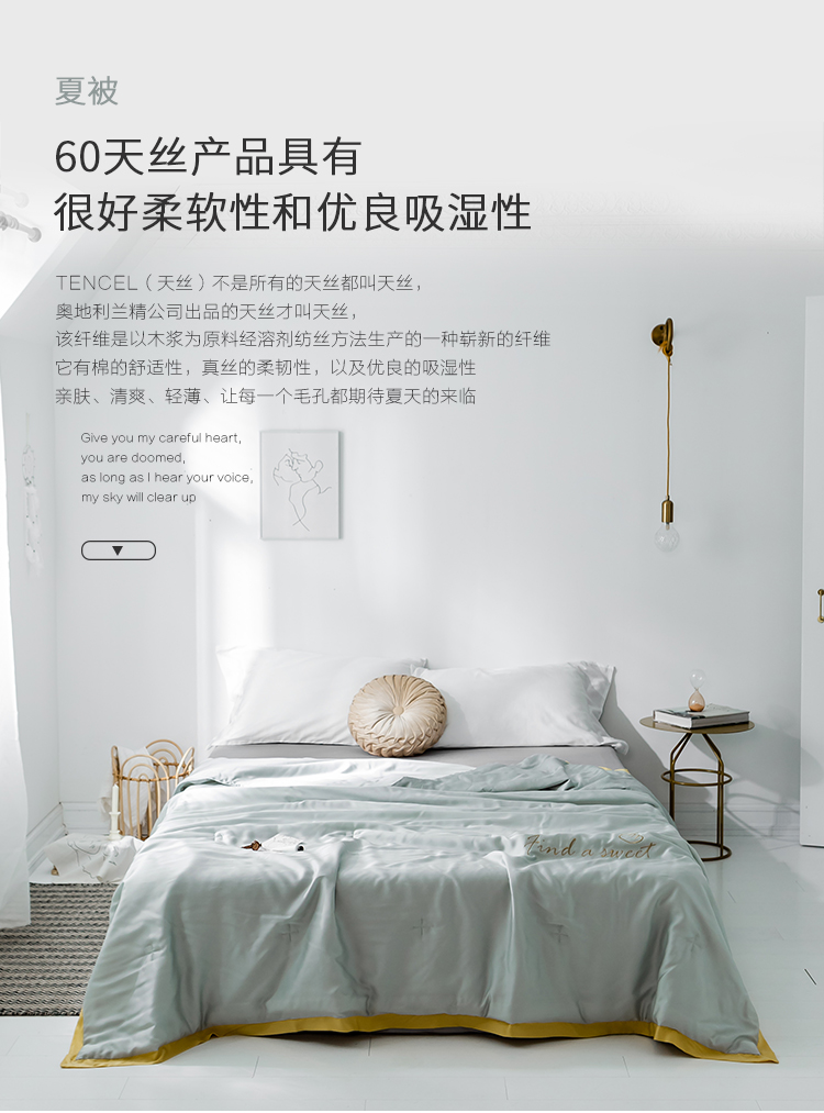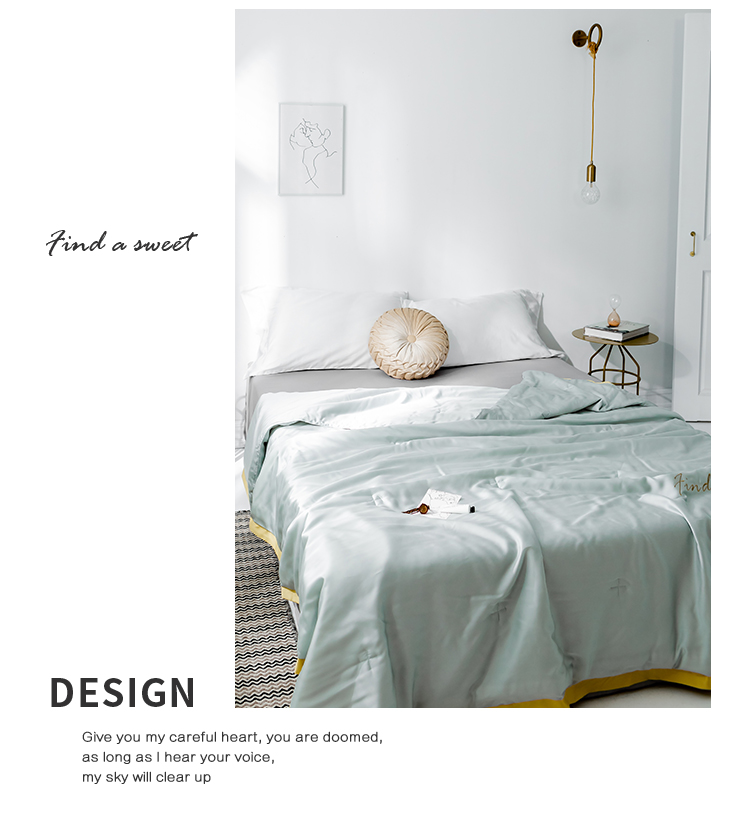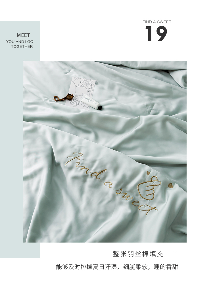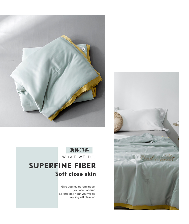 润缦家纺 2019新款60天丝夏被比心系列 茵石绿
