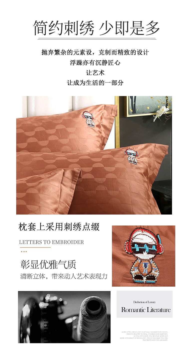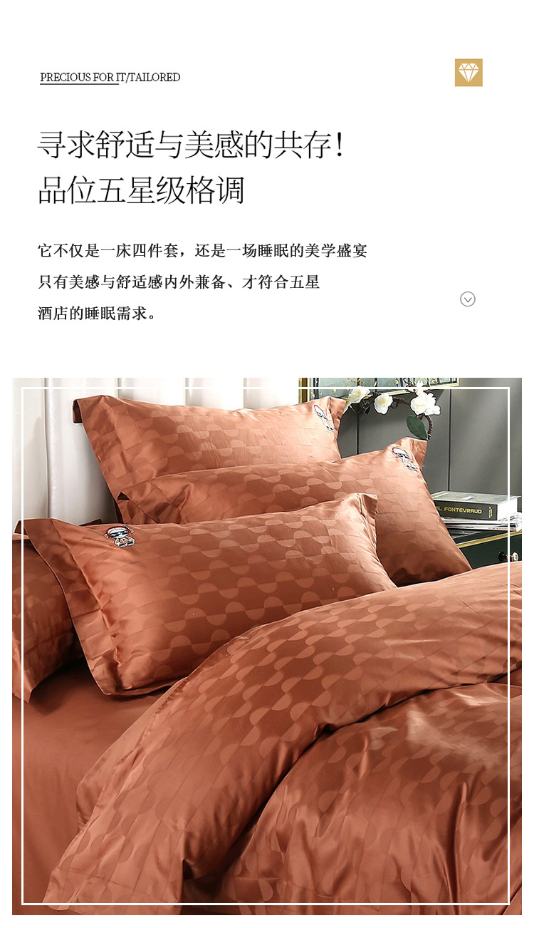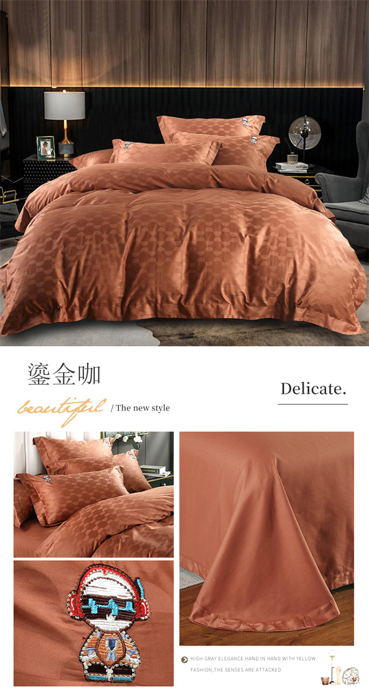 娇逸 2020新款100支澳棉提花刺绣款四件套 鎏金咖