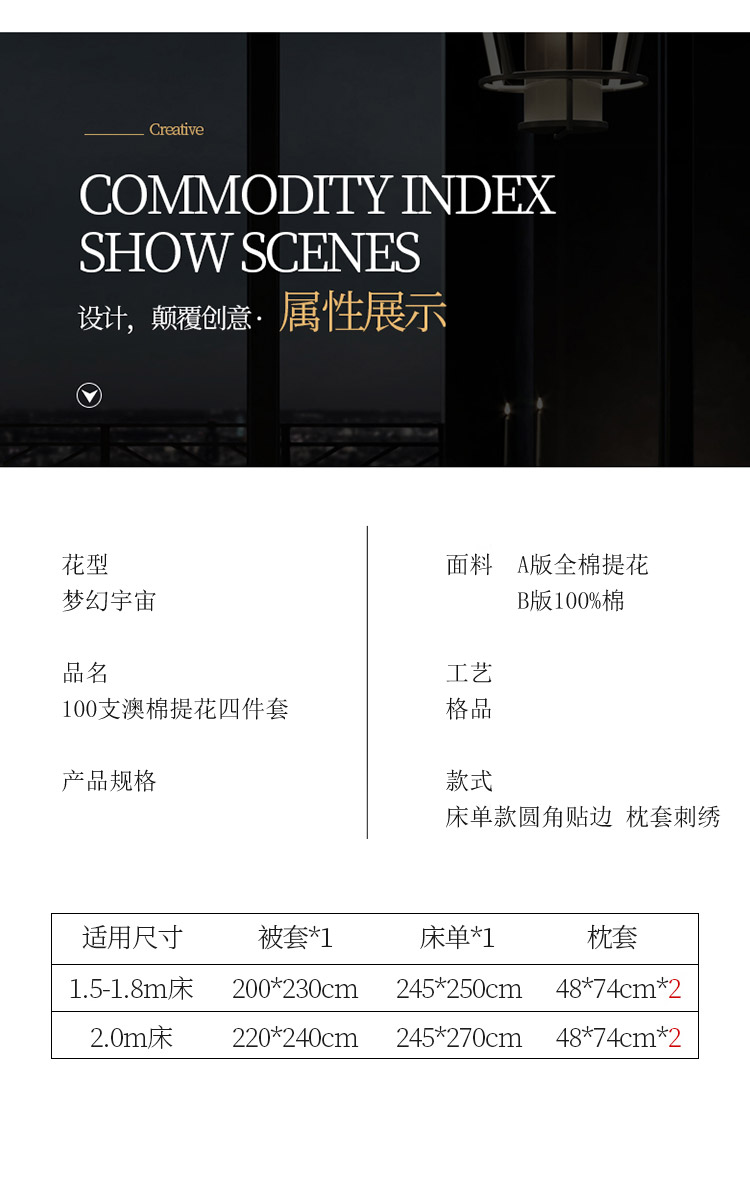 商品名称:娇逸 2020新款100支澳棉提花刺绣款四件套 鎏金咖