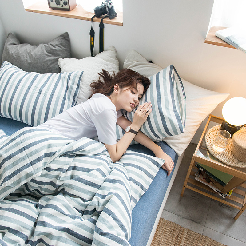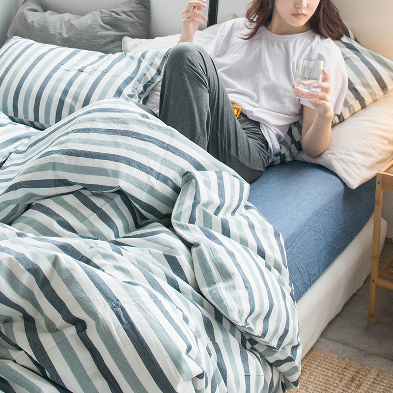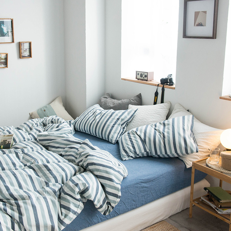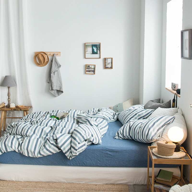 尚品本色 2022新款水洗棉套件系列-单床笠 蓝白条纹