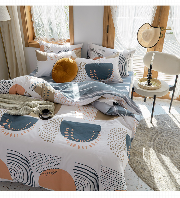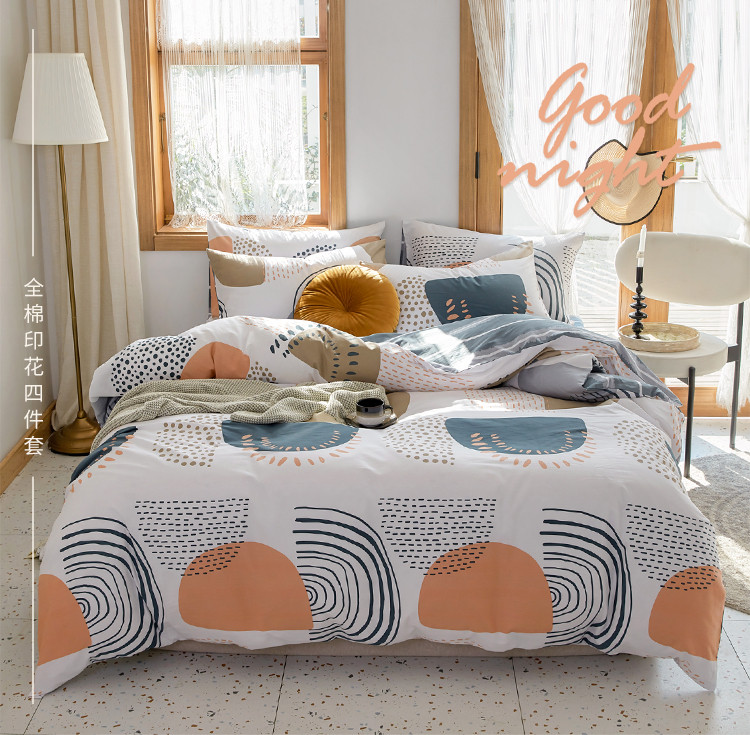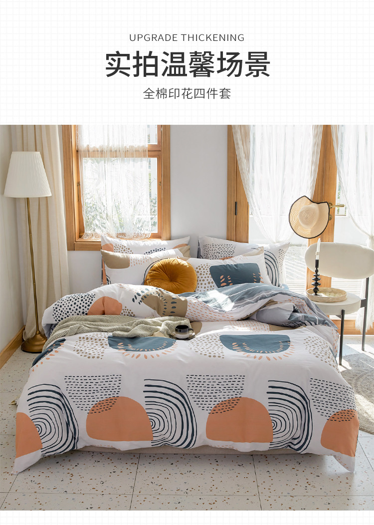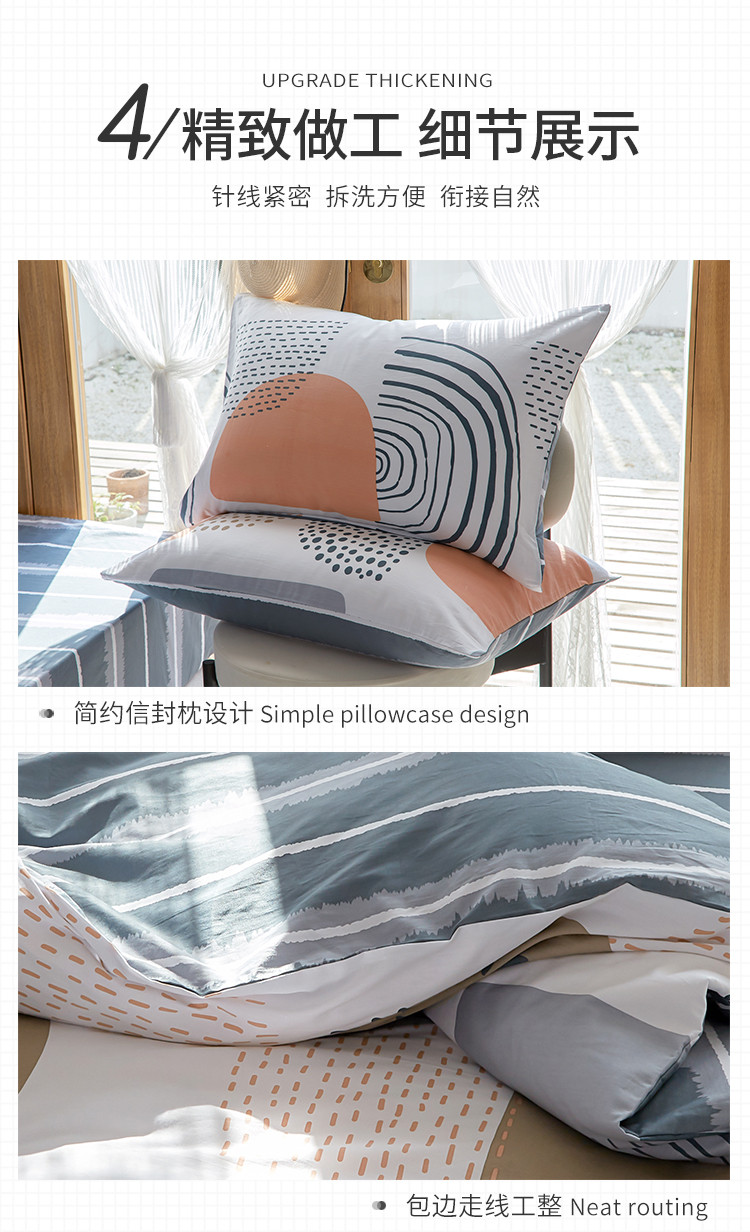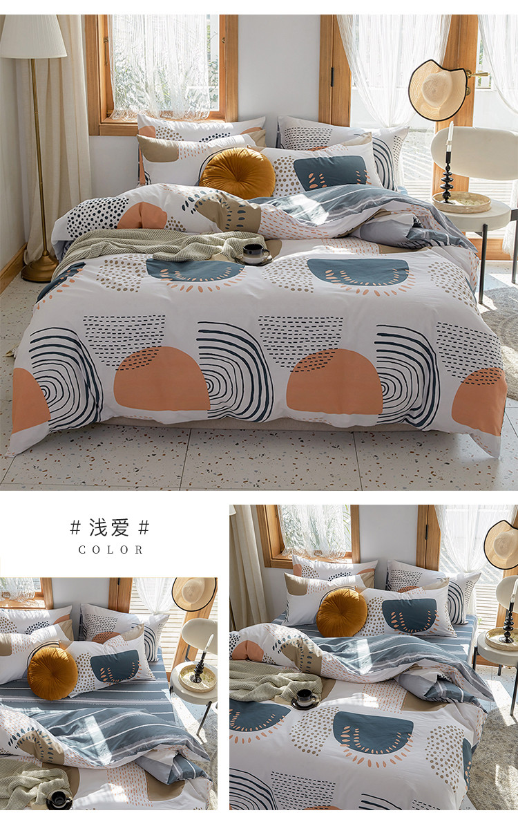 商品名称:仟网汇 2021新款春夏全棉北欧风几何系列四件套 浅爱