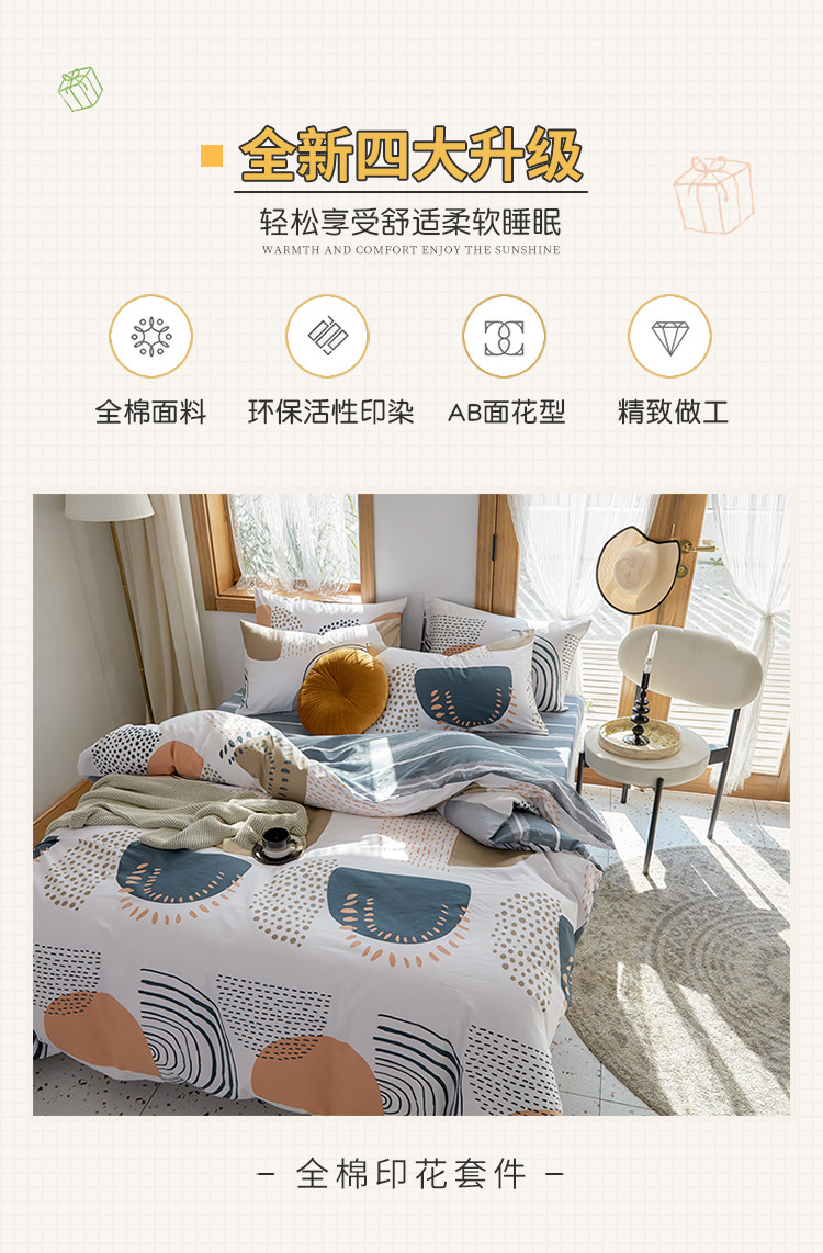 (总)仟网汇 2026新款亲肤舒适仿棉印花床盖四件套,豹纹喵咖,蛋糕派,灰小格,马戏团,萌萌兔,梦幻灰,梦幻紫,南瓜季,泡芙小象,皮皮狗,奇奇,圣诞夜,甜心喵,童趣,五彩斑斓,小木马,小时光,小熊头,鱼多多,逐梦,组合图仅供参考不可下单